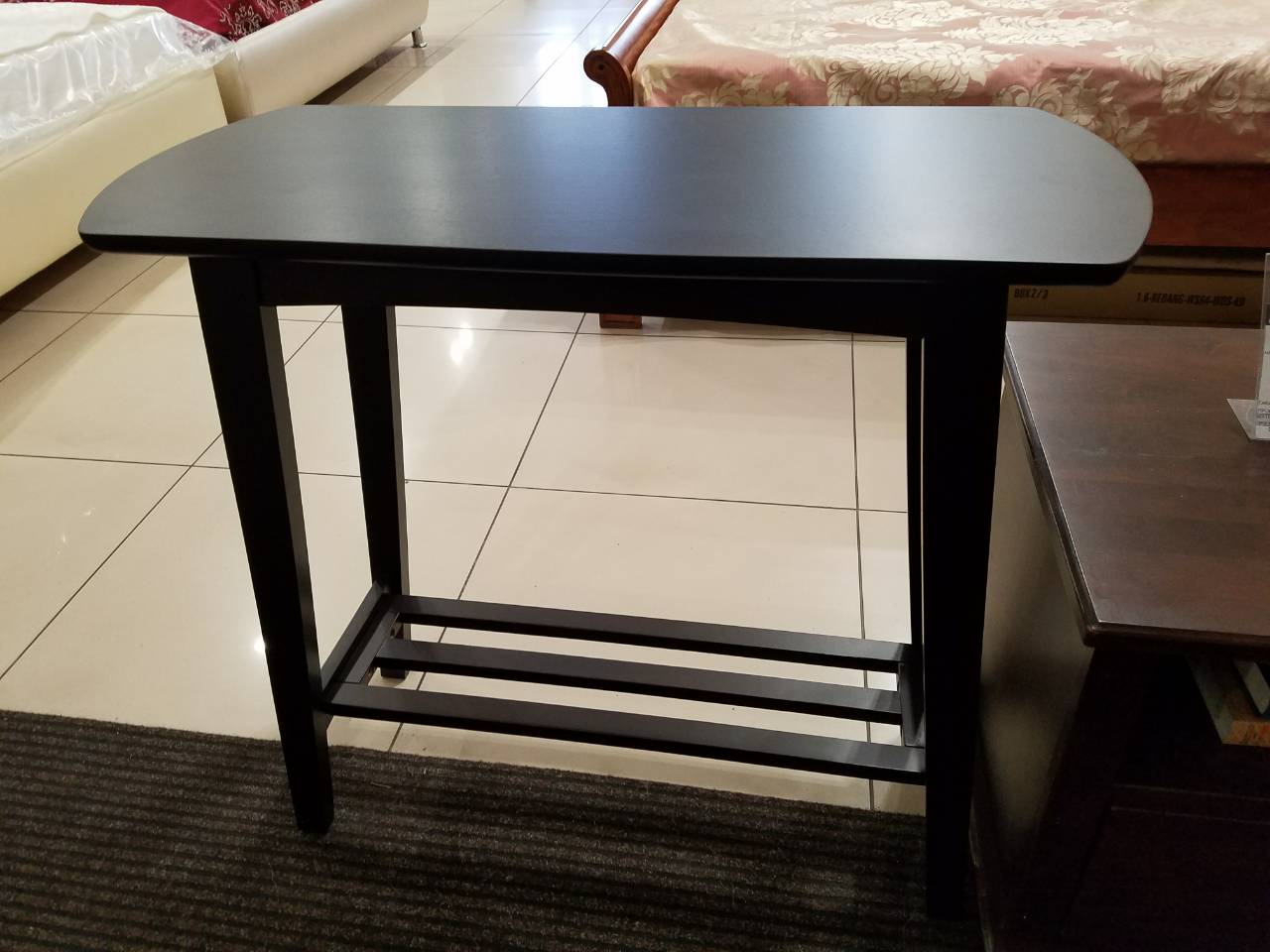 Столешница выполнена из МДФ. Ножки консоли выполнены из массива гевеи.