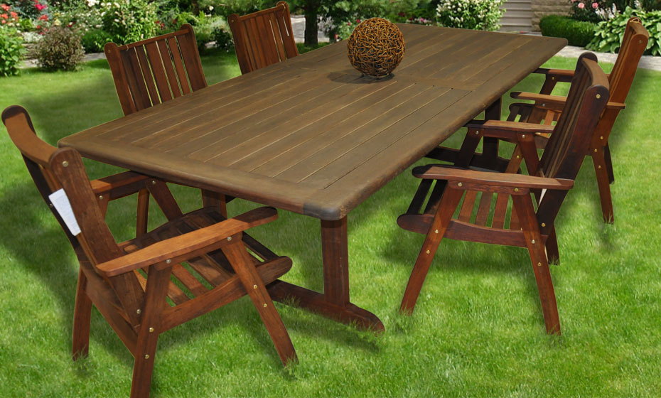 Примечание: без соответствующего ухода, при длительном нахождении на открытом воздухе, Мербау изменяет свой цвет на серебристо-серый, что является природной защитной реакцией дерева. Так же со временем могут появится мелкие растрескивания. Это не влияет на физико-механические свойства и целостность мебели и является нормальным явлением, возникающем в процессе старения дерева. Возможно восстановление первоначального цвета путем обработки мебели специальным маслом.