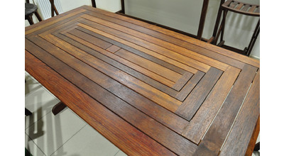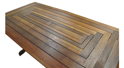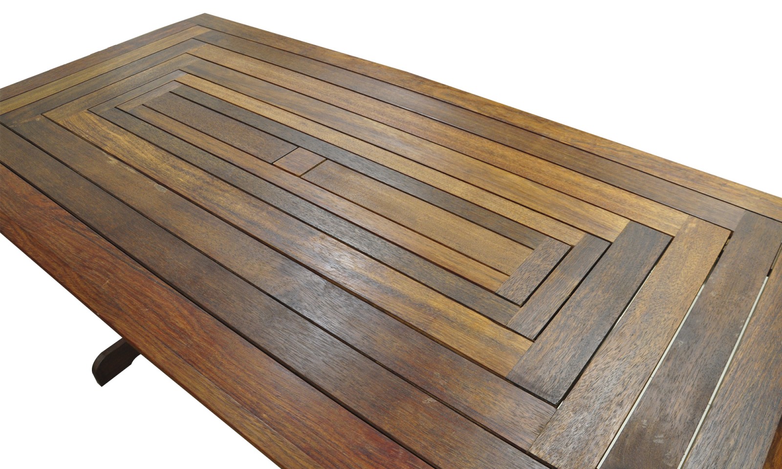 Стол обеденный TS-15a изготовлен из тропической породы дерева Мербау (Квила) (ботаническое название:Intsia bijuga, Intsia palembanica), которое произрастает в экваториальных и тропических лесах Папуа Новой Гвинеи, Филиппинах и Индонезии. Цвет древесины тёмный красно-коричневый с вкраплением золотых прожилок. Высокое содержание маслянистых веществ и природного антисептика в составе дерева позволяет обходится без обработки химическими красителями и защитными покрытиями. Мербау одна из самых долговечных и прочных пород дерева в мире. Идеально подходит для использования на открытом воздухе.