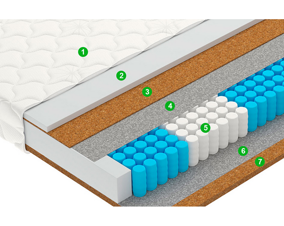 7. Кокосовая койра. Натуральный материал из спрессованных волокон кокосового ореха, пропитанных латексом. Используется для придания матрасу жесткости.| Ширина | 1600 мм |