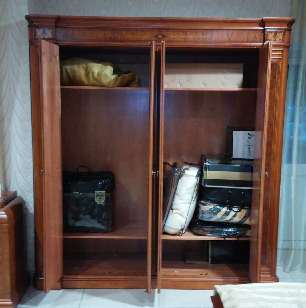 Шкаф для одежды 4-дв. VS-1-SA станет одним из главных элементов спальни классического интерьера с соответствующим декором и отделкой помещения в едином стиле.
