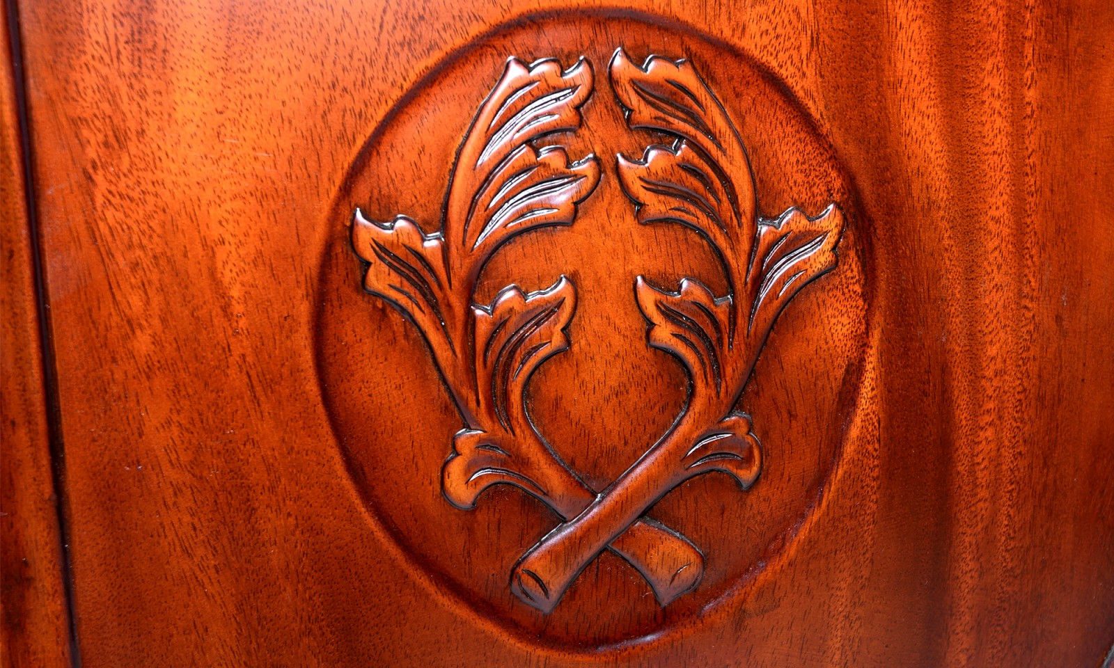 Следует отметить богатое разнообразие цветов мебели из махагона. Помимо натурального оттенка массива махагона предлагаются нетрадиционные цвета - слоновой кости и слоновой кости с эффектом старения, белый с эффектом старения и золотым прокрасом, нежно-кремовый с различной отделкой, цвет медного золота, а также цвета серебряной и золотой глазури.