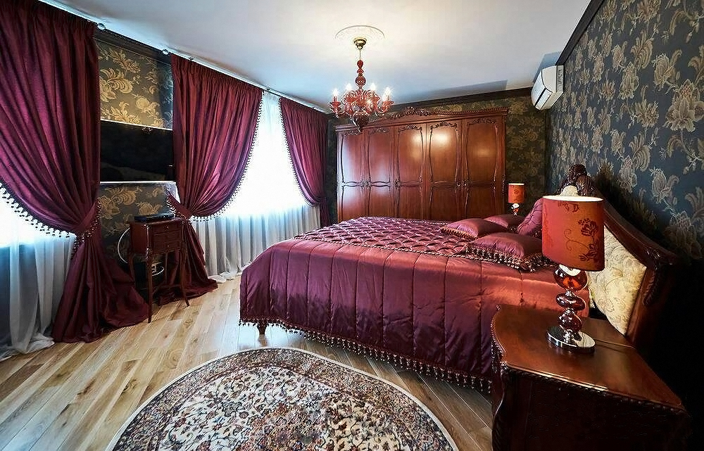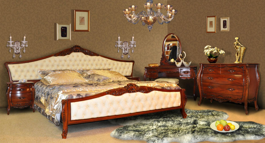 Применение массива красного дерева не вызывает сомнений как в надежности и долговечности конструкции кровати, так и в ее экологичности и безопасности. Махагон – твердая, мелковолокнистая и в тоже время очень пластичная древесина, что позволяет делать резные детали с очень искусной мелкой резьбой без расслоения и трещин. Махагон – древесина с лоском и красивым фактурным рисунком. Перед использованием в производстве мебели древесина проходит через полный цикл сушки и предварительной обработки антисептиками (для защиты от вредителей) и антипиренами (для устойчивости к воспламенению). Спальня Флоренция (ВВ02-09) выполнена в классическом стиле. В комплект элитной спальни ВВ02-09 входят кровать Флоренция, шкаф для одежды 5-дв. BL02-09, комод BD02-09, тумба прикроватная BS02-09, туалетный столик BV02-09, зеркало BVM02-09, банкетка BR02-09. Эти роскошные предметы мебели имеют ряд общих особенностей: единый классический стиль, одинаковую отделку, живописную резьбу, одинаковую красивую фурнитуру. Приобрести Вы можете как весь комплект мебели, так и отдельные ее предметы в понравившемся Вам цвете. Купить элитную спальню Флоренция или любой из ее предметов мебели возможно в разнообразном цвете: насыщенный красновато-коричневый (GMVD), темно-коричневый (OG), итальянский орех (JWW), (слоновая кость с патиной (White Antique), слоновая кость с золотом (WBG), белый с патиной (IVORY), золотой (Gold), серебряный (Silver). Кроме того, Вы можете выбрать под заказ обивочную ткань в понравившемся цвете, в которой будут изготовлены изголовье и изножье кровати, сидение банкетки: жаккард, экокожа, искусственная кожа, натуральная кожа, шенилл натуральный, шенилл искусственный. Какого покупателя заинтересует спальня Флоренция? 1. Покупателя, который ценит классику и аристократизм: спальня Флоренция выполнена в классическом стиле, имеет элегантный, аристократический внешний вид. 2. Покупателя, который ценит надежность и долговечность мебели: вследствие высококачественных материалов и высококвалифицированной рабочей силе, благодаря которым была изготовлена спальня Флоренция, она будет служить своему хозяину долгие годы, не теряя при этом своих свойств. 3. Покупателя, который ценит удобство и комфорт в мебели: предметы спальни Флоренции обладают высокой эргономичностью, произведены с учетом анатомических особенностей строения тела человека и очень удобны в использовании. 4. Покупателя, который ценит красоту и изысканность мебели: спальня Флоренция имеет элегантный, аристократический, роскошный внешний вид и станет украшением Вашего дома. 5. Покупателя, который хочет подчеркнуть свой статус, достаток, высокое положение в обществе: элитная спальня Флоренция создана не для каждого покупателя, а только для избранного ценителя королевского шика, который знает толк в роскоши. 6. Покупателя, который умеет с умом тратить деньги: спальня Флоренция является надежной, долговечной мебелью, удобной в использовании и несравненно красивой. Она прослужит своему хозяину долгие-долгие годы и не потеряет со временем свои великолепные характеристики. Иными словами, спальня Флоренция удовлетворит потребности самого искушенного ценителя роскошной мебели.