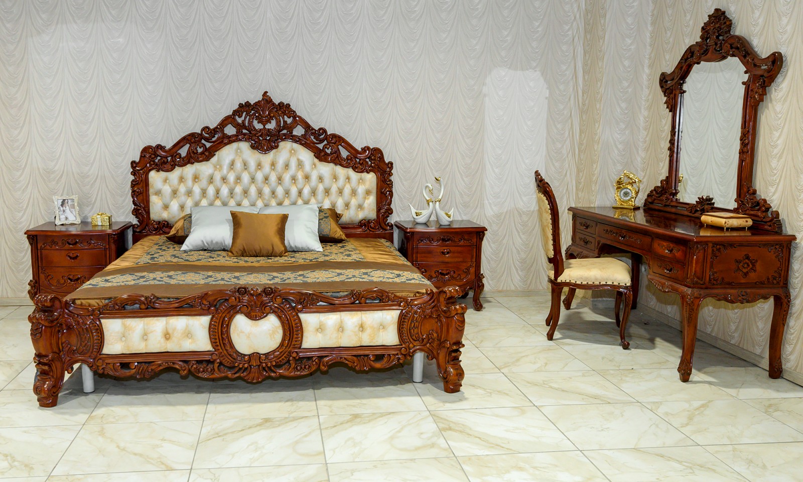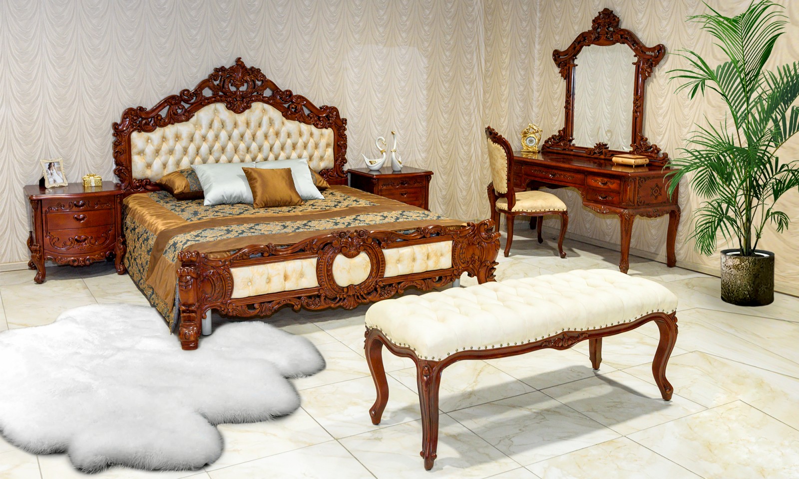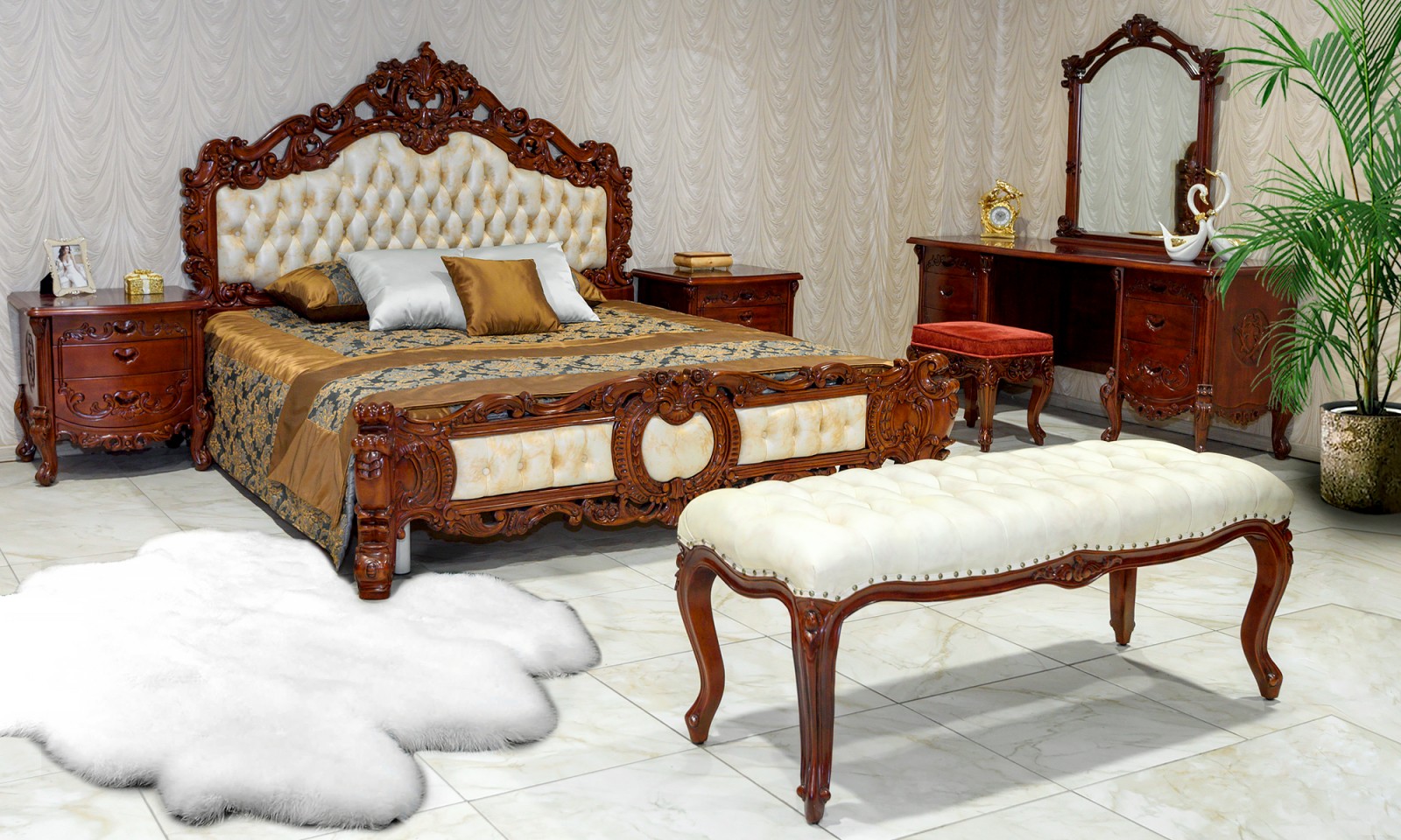 Мы импортируем мебель из коллекции «Европейская классика». Характерная особенность дизайна данной мебели - сложные формы и линии, богатая декоративная резьба, пышность, большое количество дополнительных деталей и украшений, вычурность, характерная для стиля барокко.