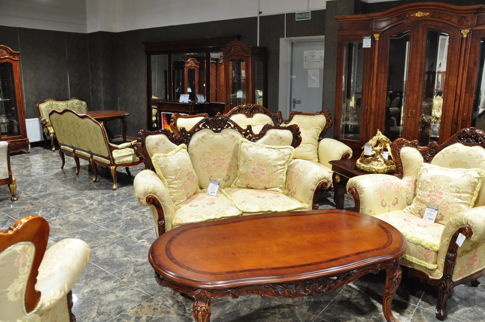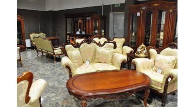 - мебель для гостиных и столовых комнат (шкафы-витрины 1, 2, 3, 4-х дверные, угловые, круглые; гарнитуры мягкой мебели, столы журнальные, кофейные, тумбы под ТВ, комоды, скамьи, подставки для журналов цветов, сервировочные тележки; столы обеденные, стулья, барные стойки, камины).
