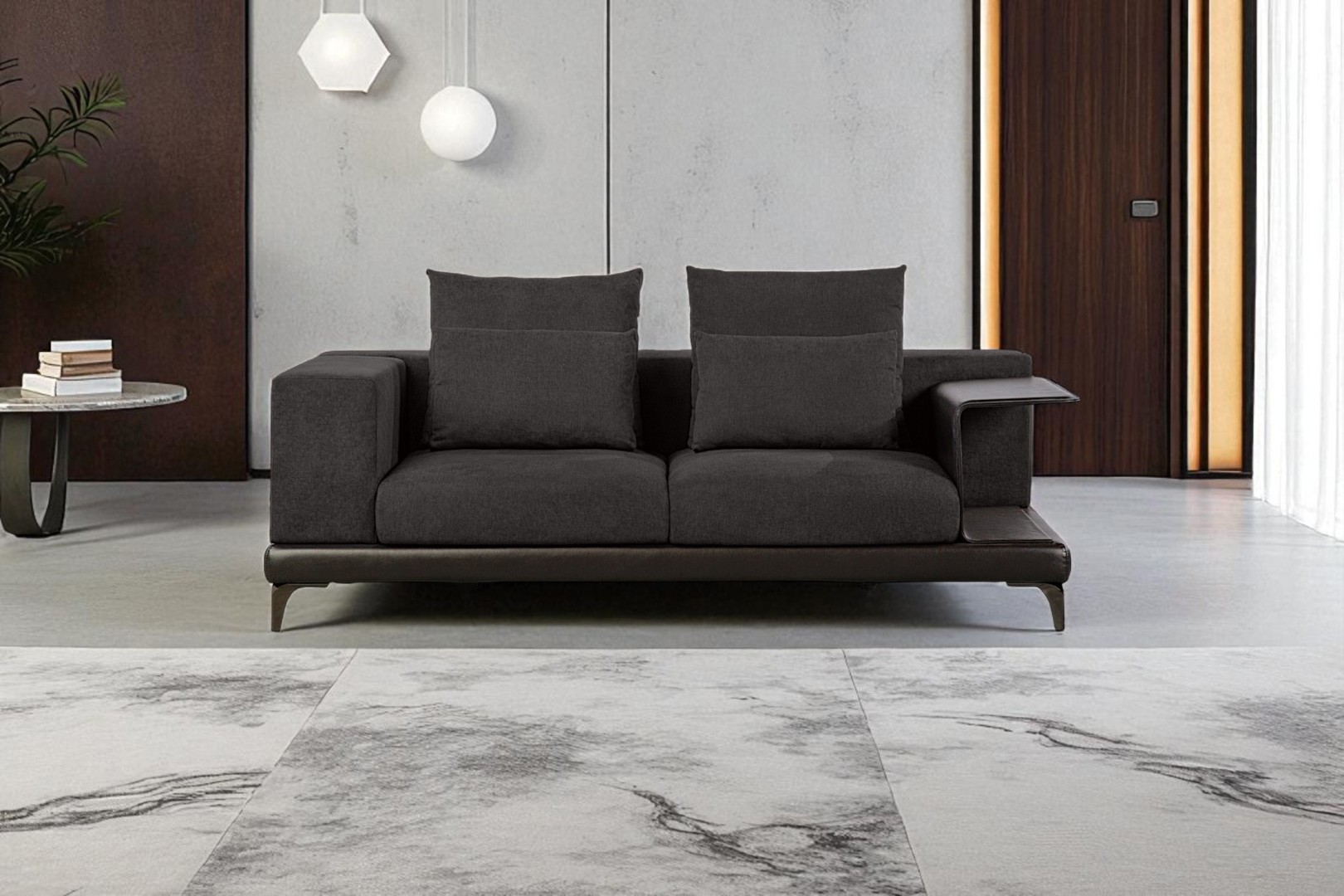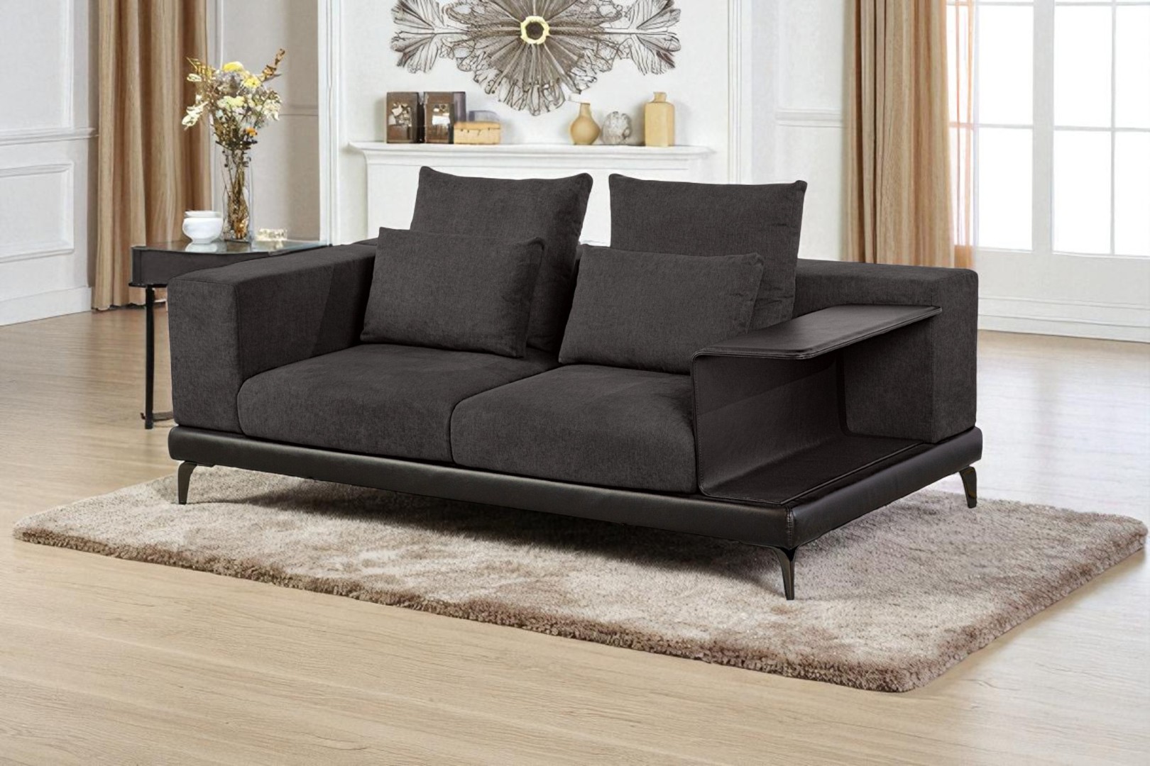 Диван обит тканью со всех сторон, что позволяет использовать данную модель для зонирования пространства в жилом помещении.