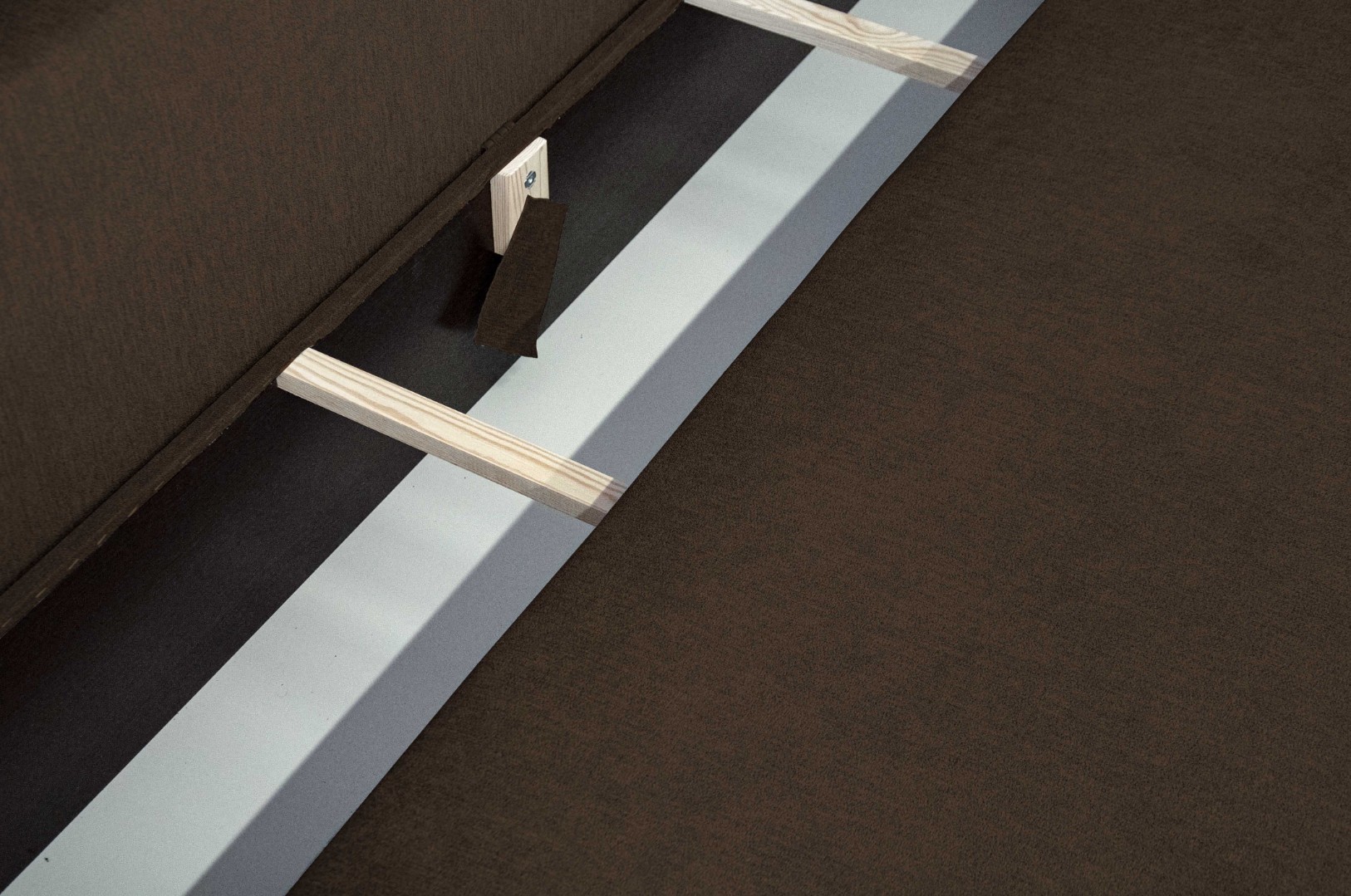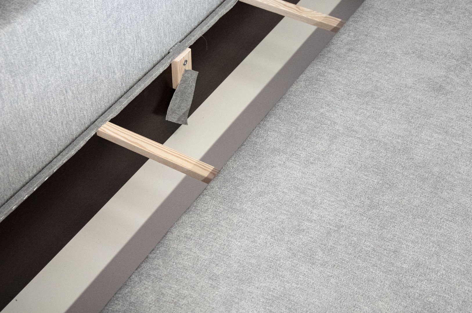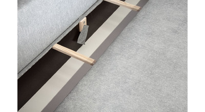 Прочность каркаса обеспечивает использование сухого бруса хвойных пород и ДСП. Имеет вместительный ящик для хранения постельных принадлежностей.