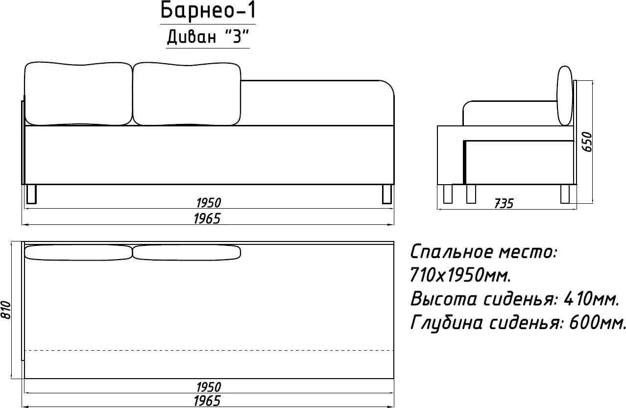 | Длина спального места | 1950 мм |