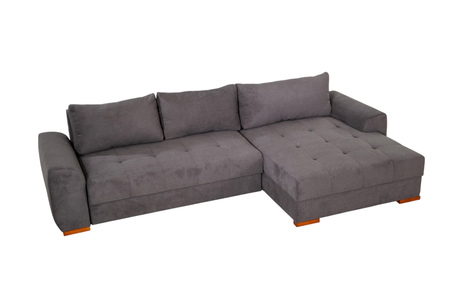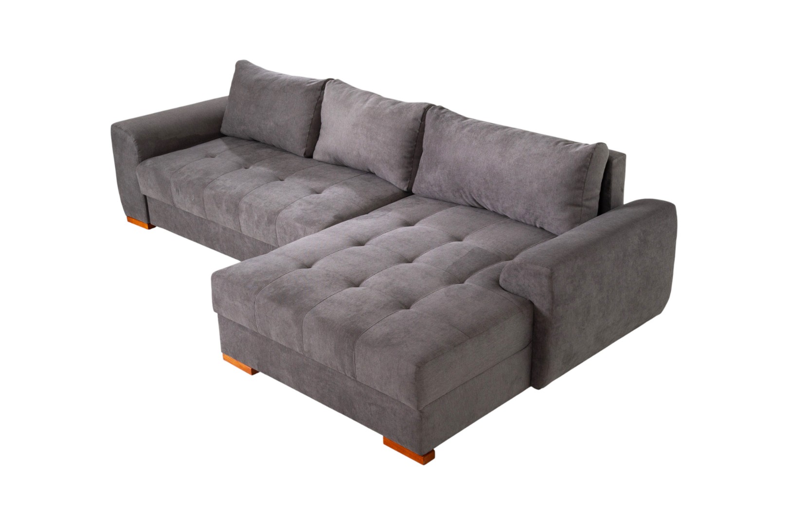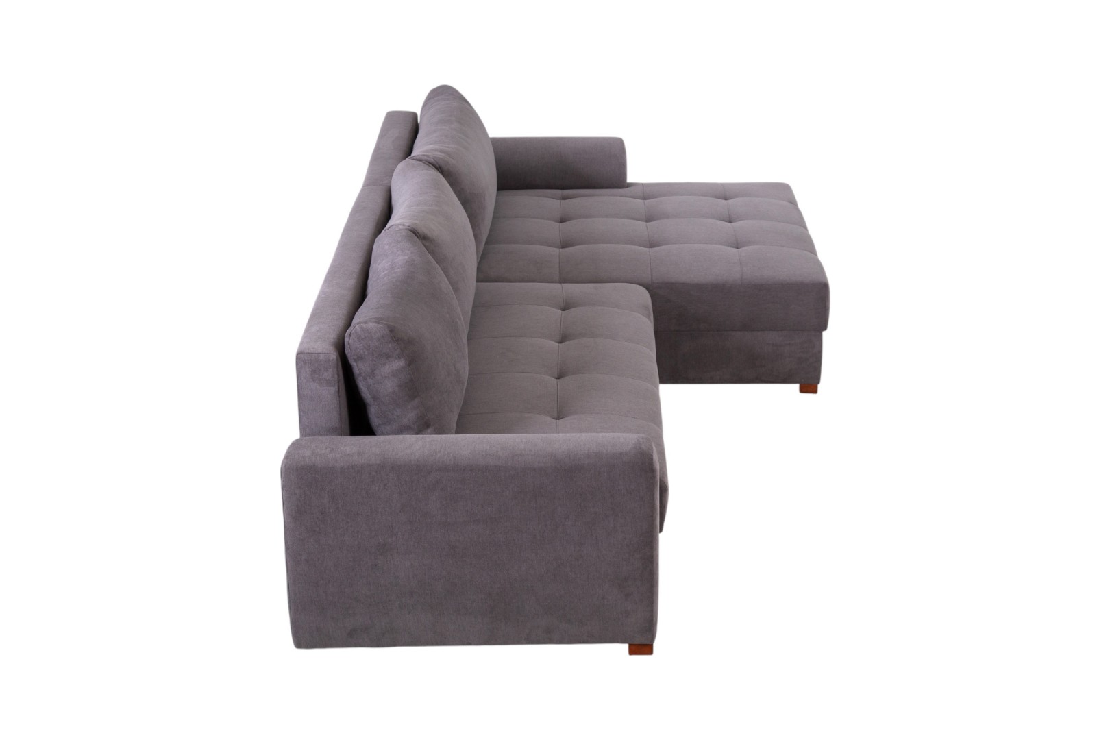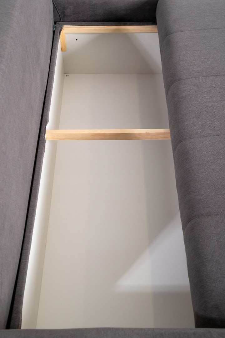 Модель углового дивана со всех сторон обита тканью, а потому может быть использована для зонирования пространства в квартирах-студиях.