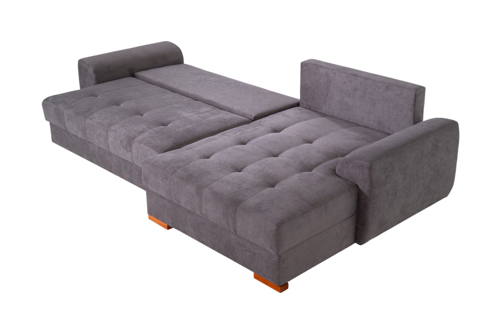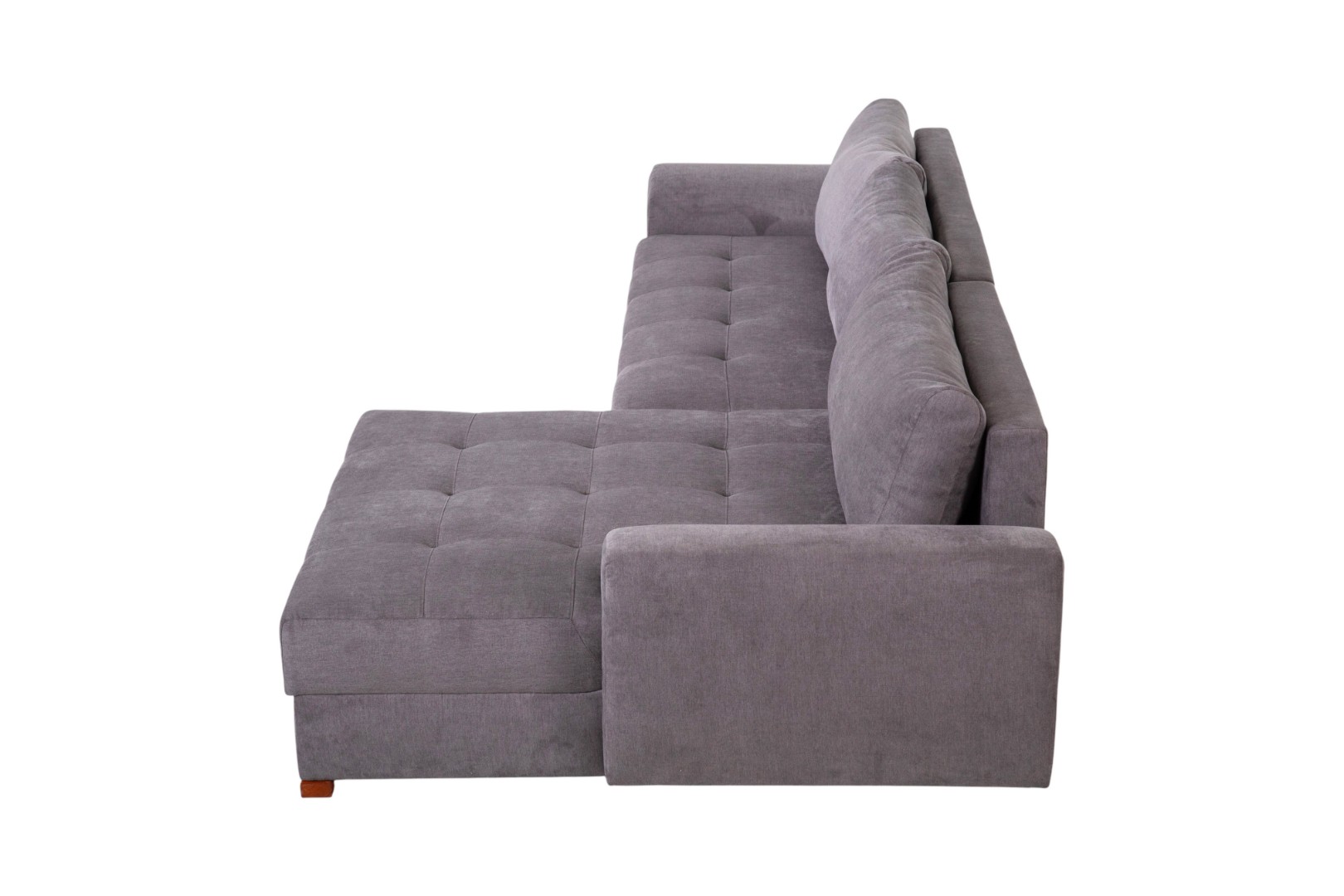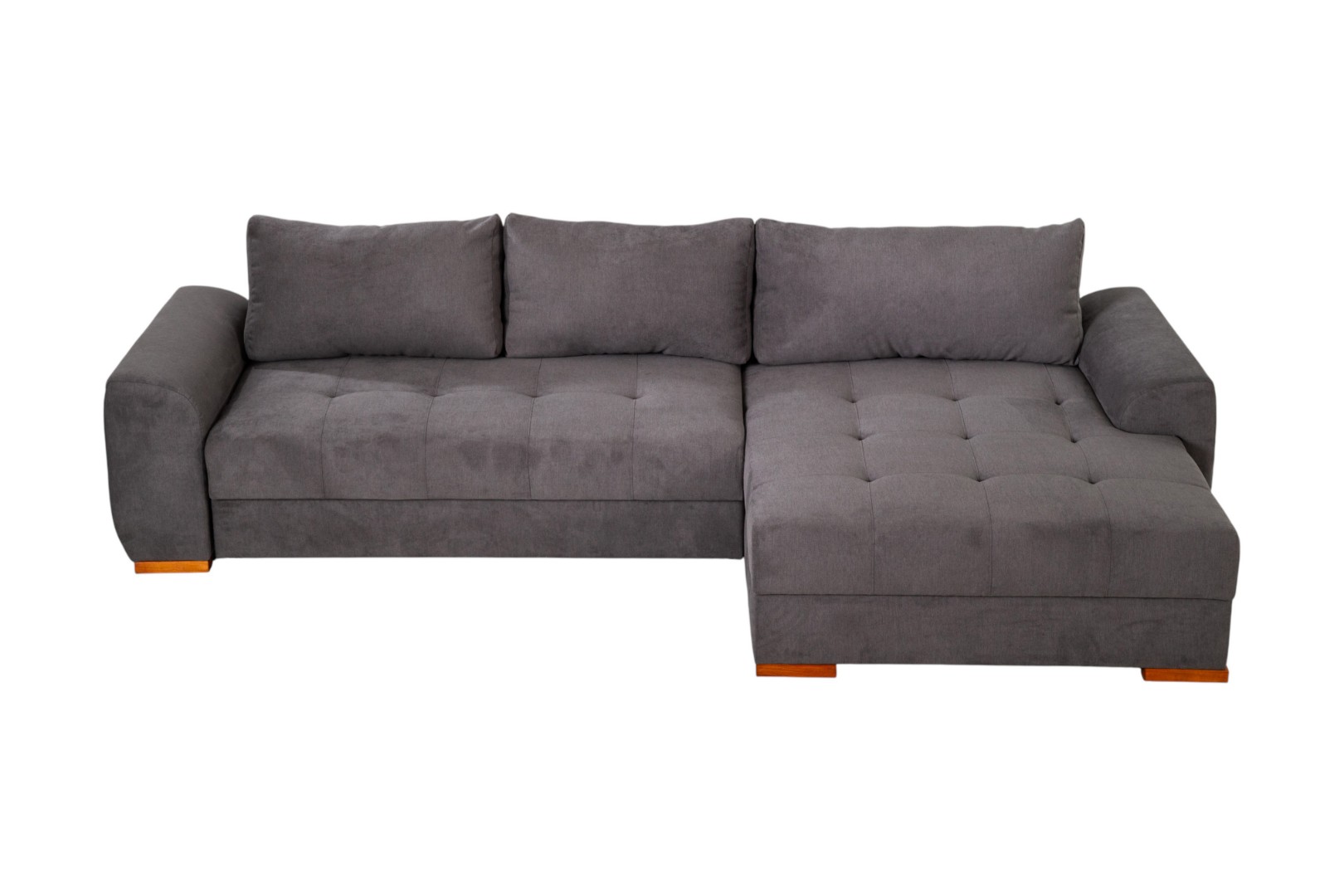 Модель углового дивана со всех сторон обита тканью, а потому может быть использована для зонирования пространства в квартирах-студиях.