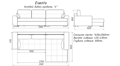 Диван-кровать «Evento» настолько большой и комфортабельный, что позволяет принять удобное положение как сидя, так и лёжа, даже не убирая подушки. Угловая часть имеет достаточно большие размеры по ширине и длине, что позволяет удобно разместиться на ней как в положении полусидя, так и лёжа.