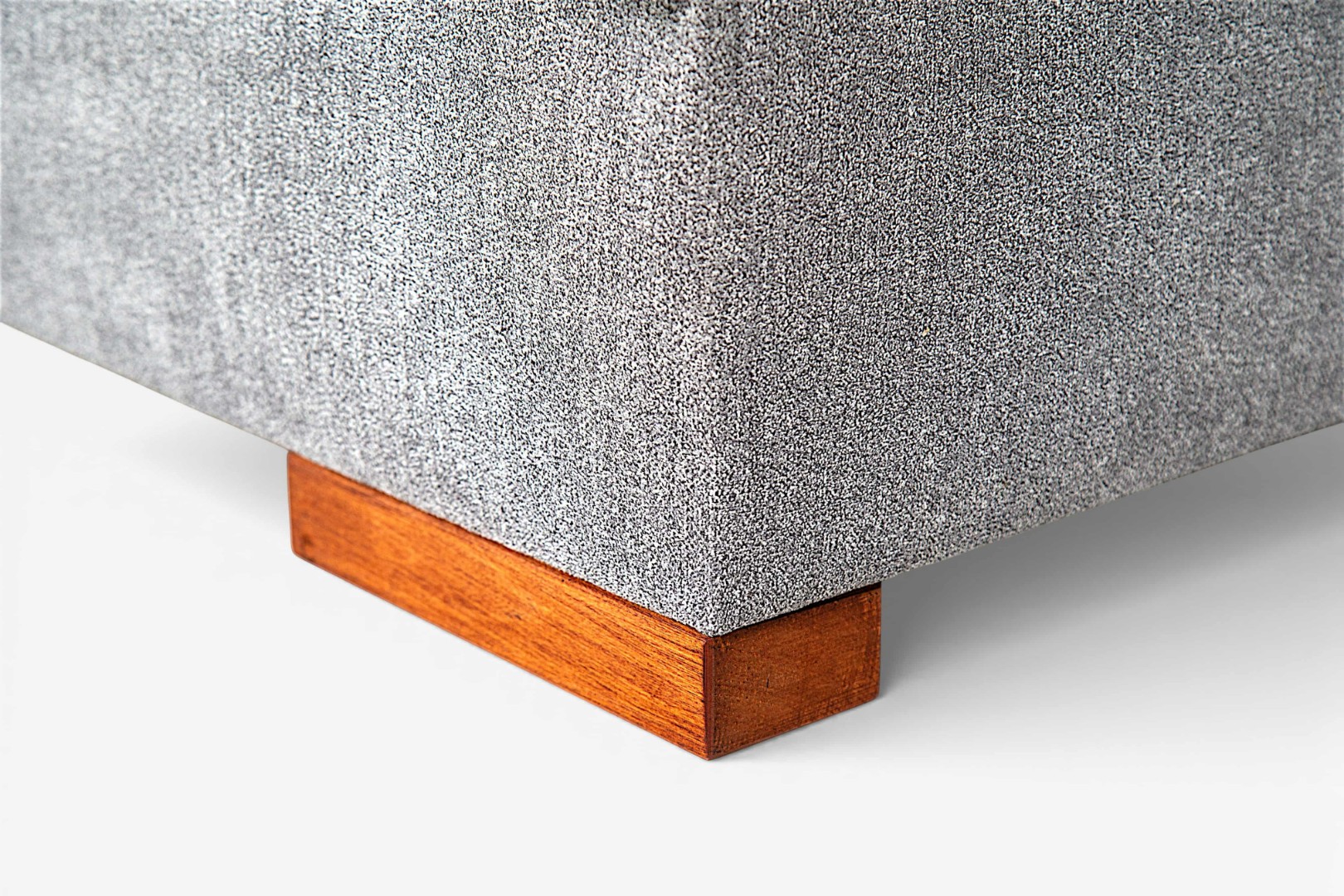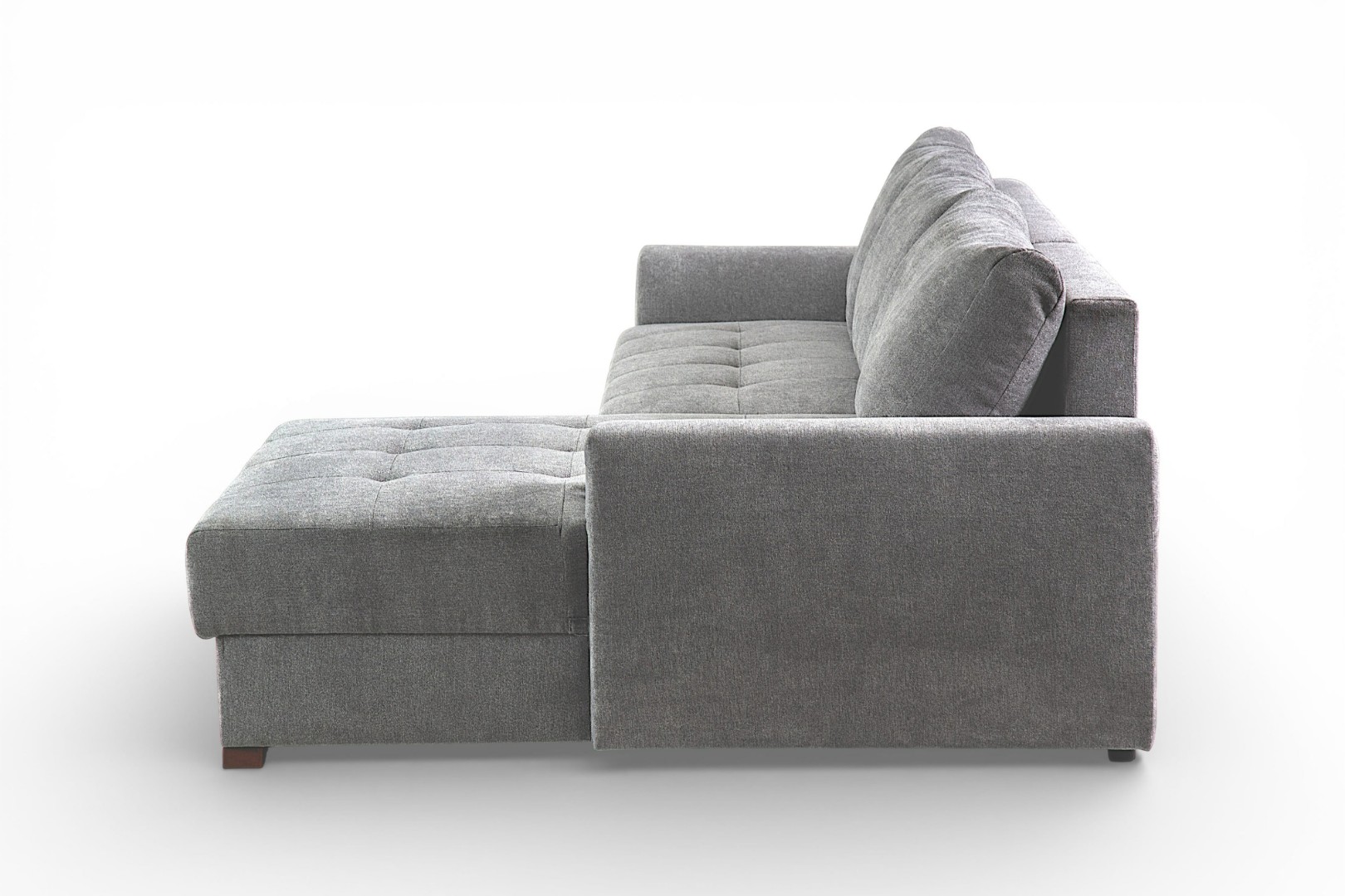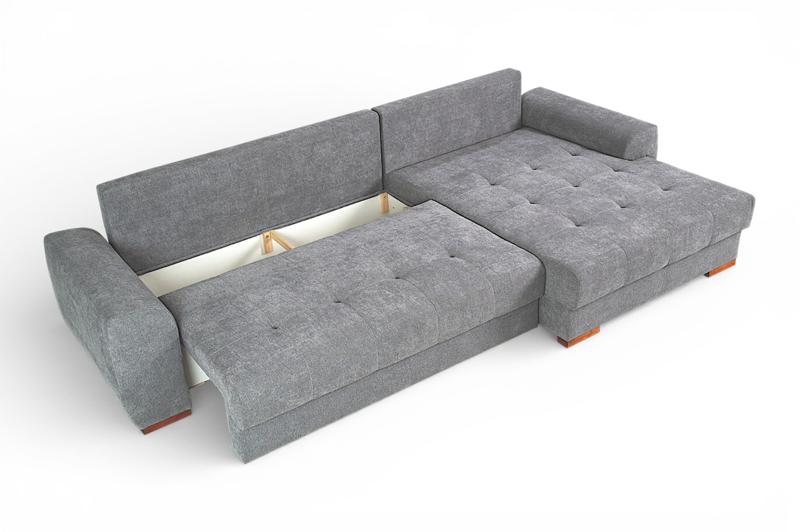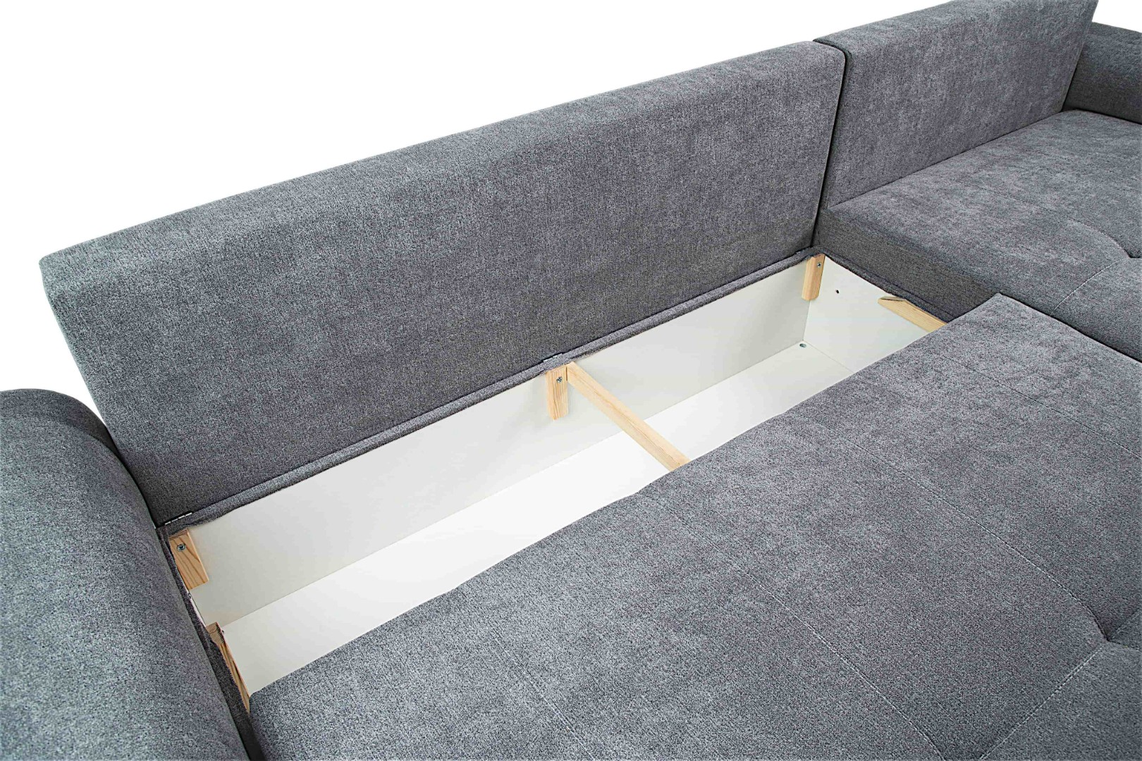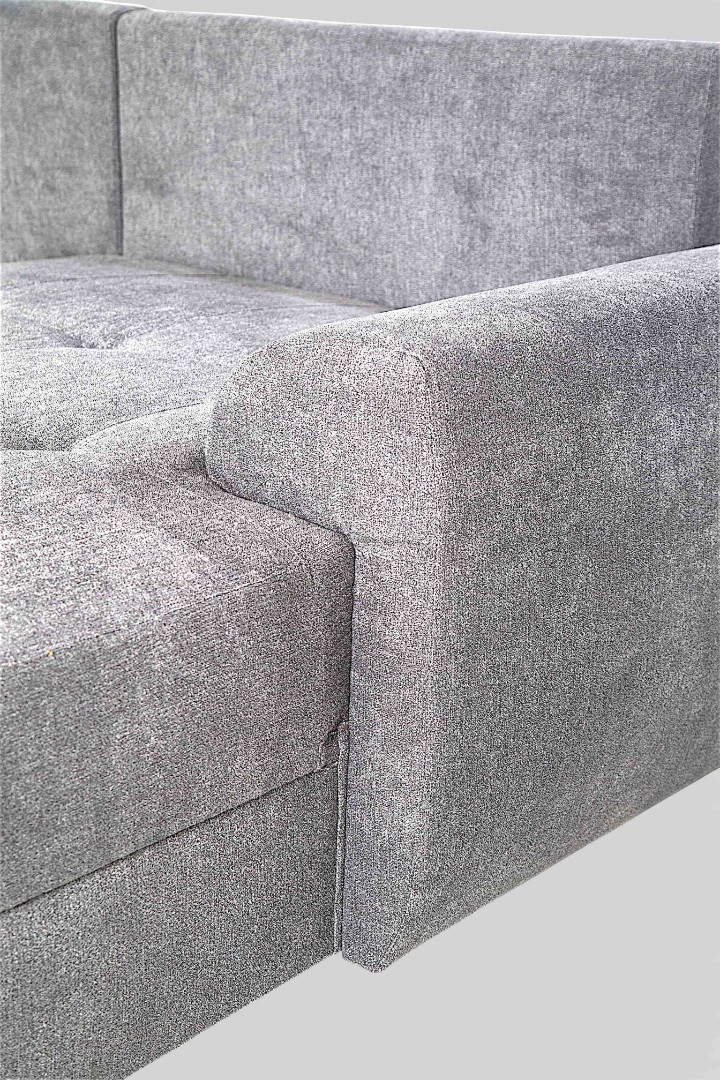Модель углового дивана со всех сторон обита тканью, а потому может быть использована для зонирования пространства в квартирах-студиях.