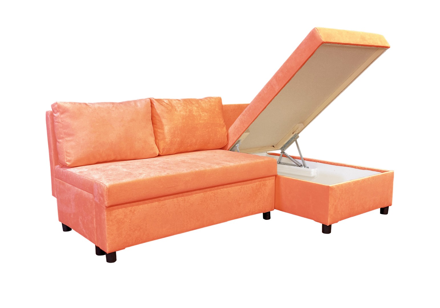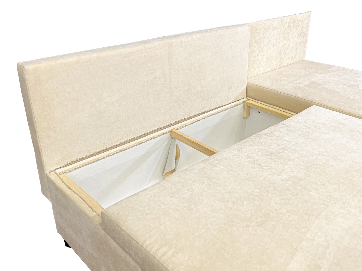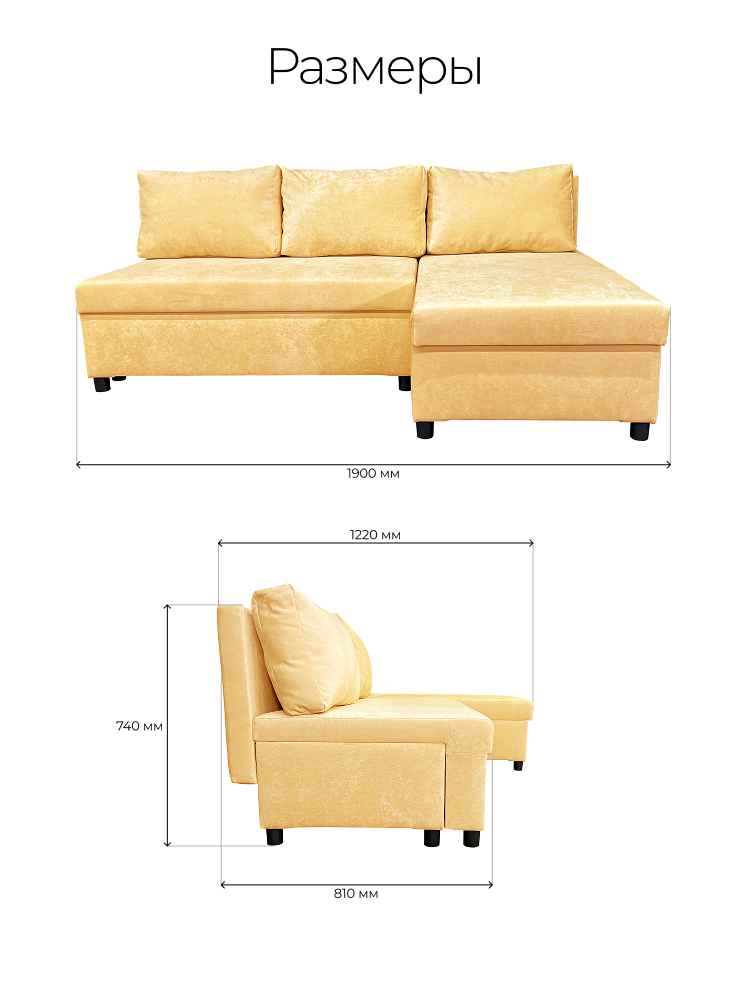 Площадь дивана полностью используется под спальное место. Спальное место — умеренно жесткое. Наполнение — высокоэластичный пенополиуретан.