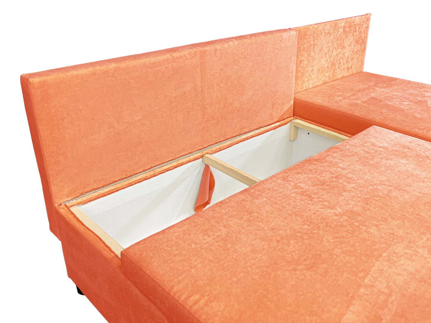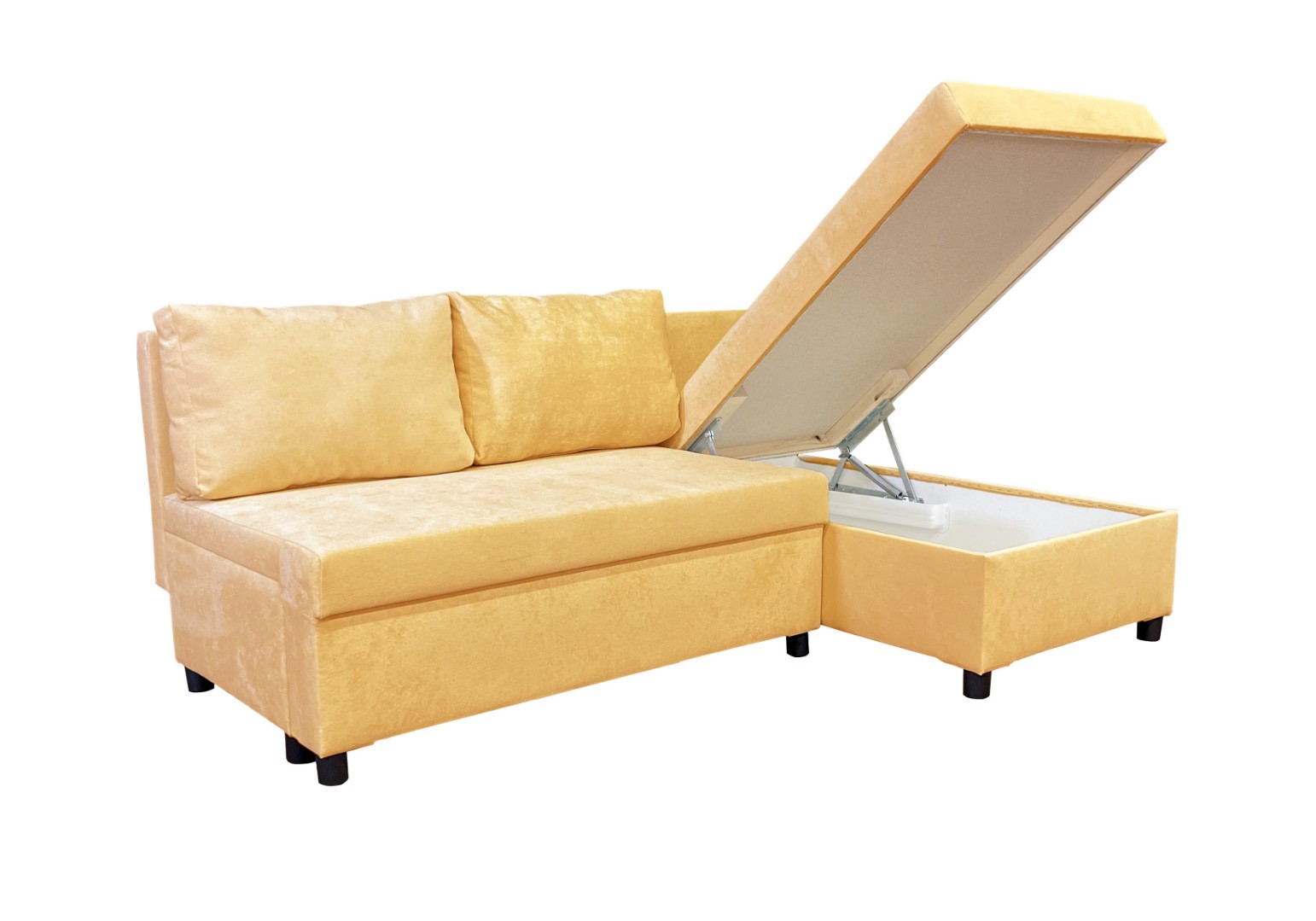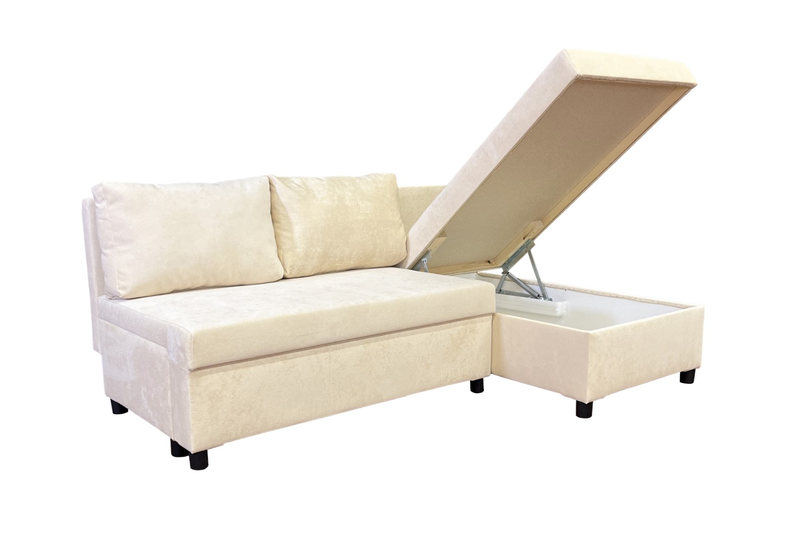 Площадь дивана полностью используется под спальное место. Спальное место — умеренно жесткое. Наполнение — высокоэластичный пенополиуретан.