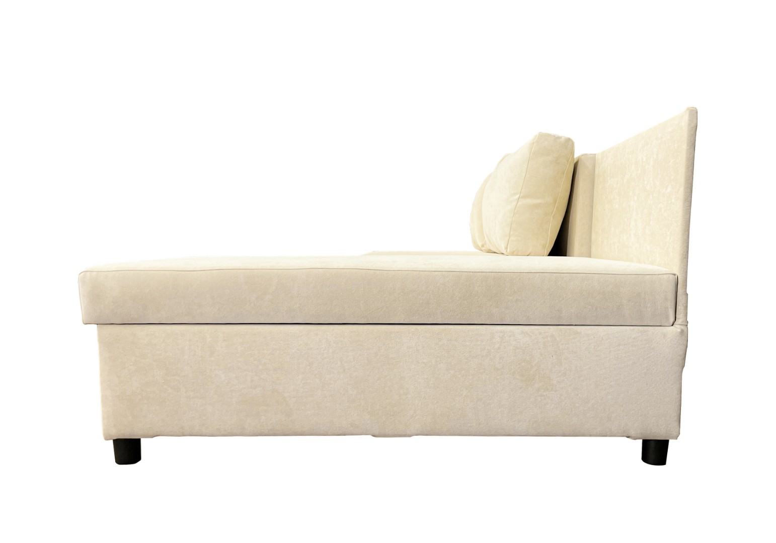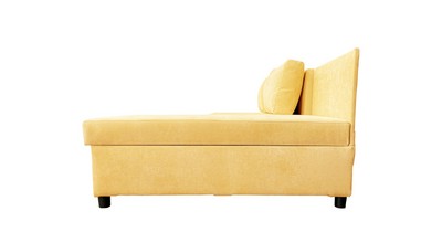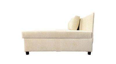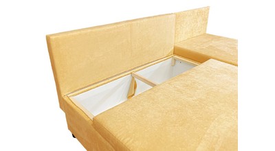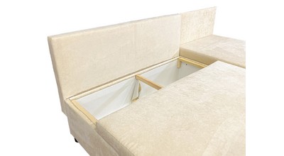 Прочность каркаса обеспечивает использование сухого бруса хвойных пород и ДСП. Имеет вместительный ящик для хранения постельных принадлежностей.