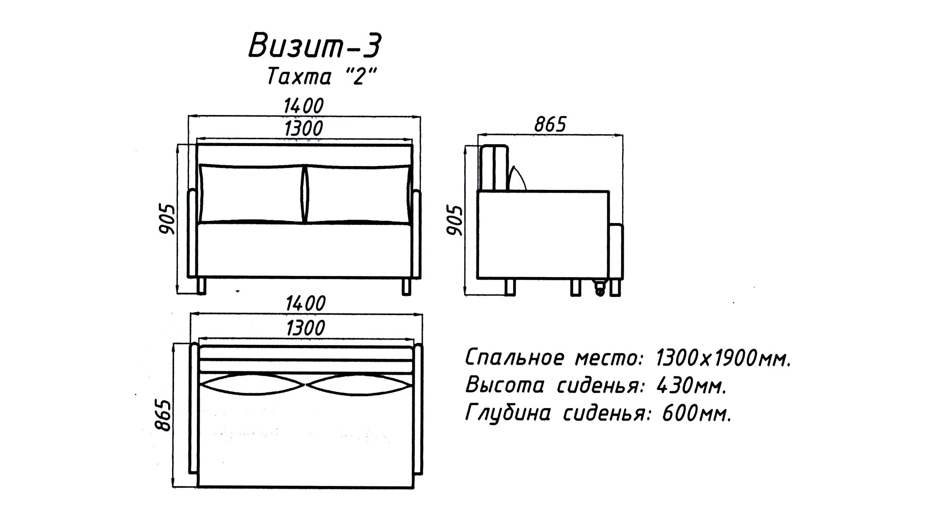 | Ширина спального места | 1300 мм |