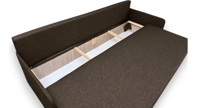 Площадь дивана полностью используется под спальное место. Спальное место - умеренно жесткое. Наполнение - высокоэластичный пенополиуретан.