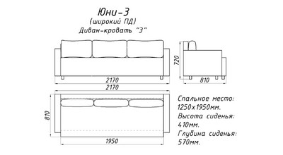 «Юни» трехместный диван-кровать с широкими подлокотниками