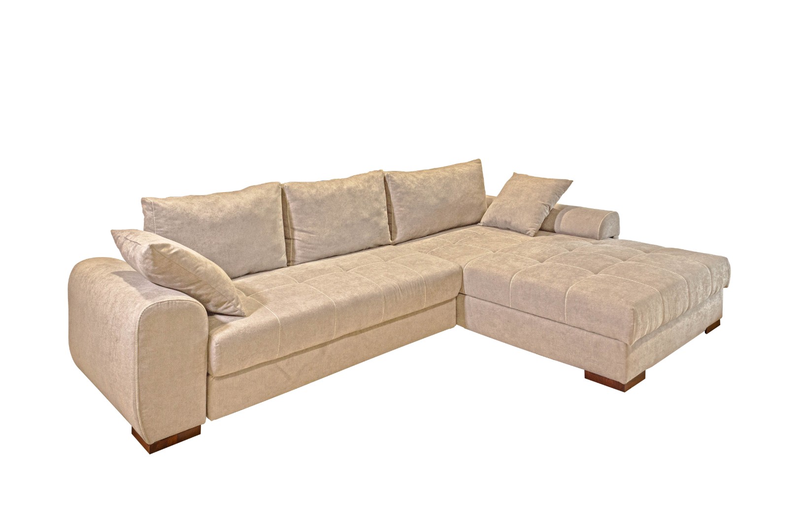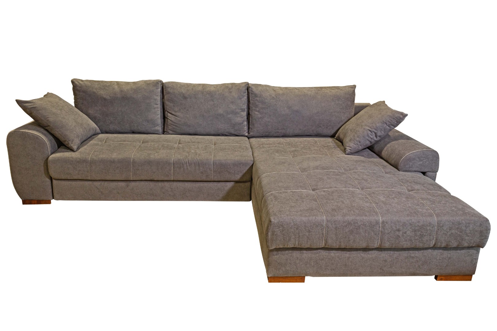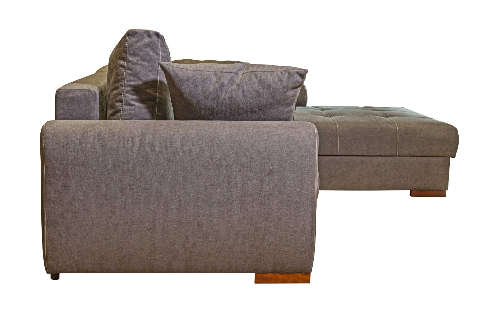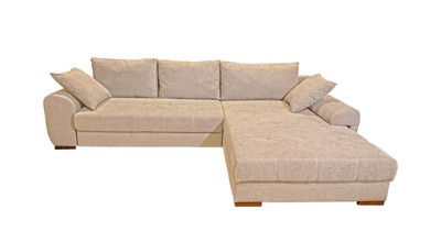 Модель углового дивана со всех сторон обита тканью, а потому может быть использована для зонирования пространства в квартирах-студиях.