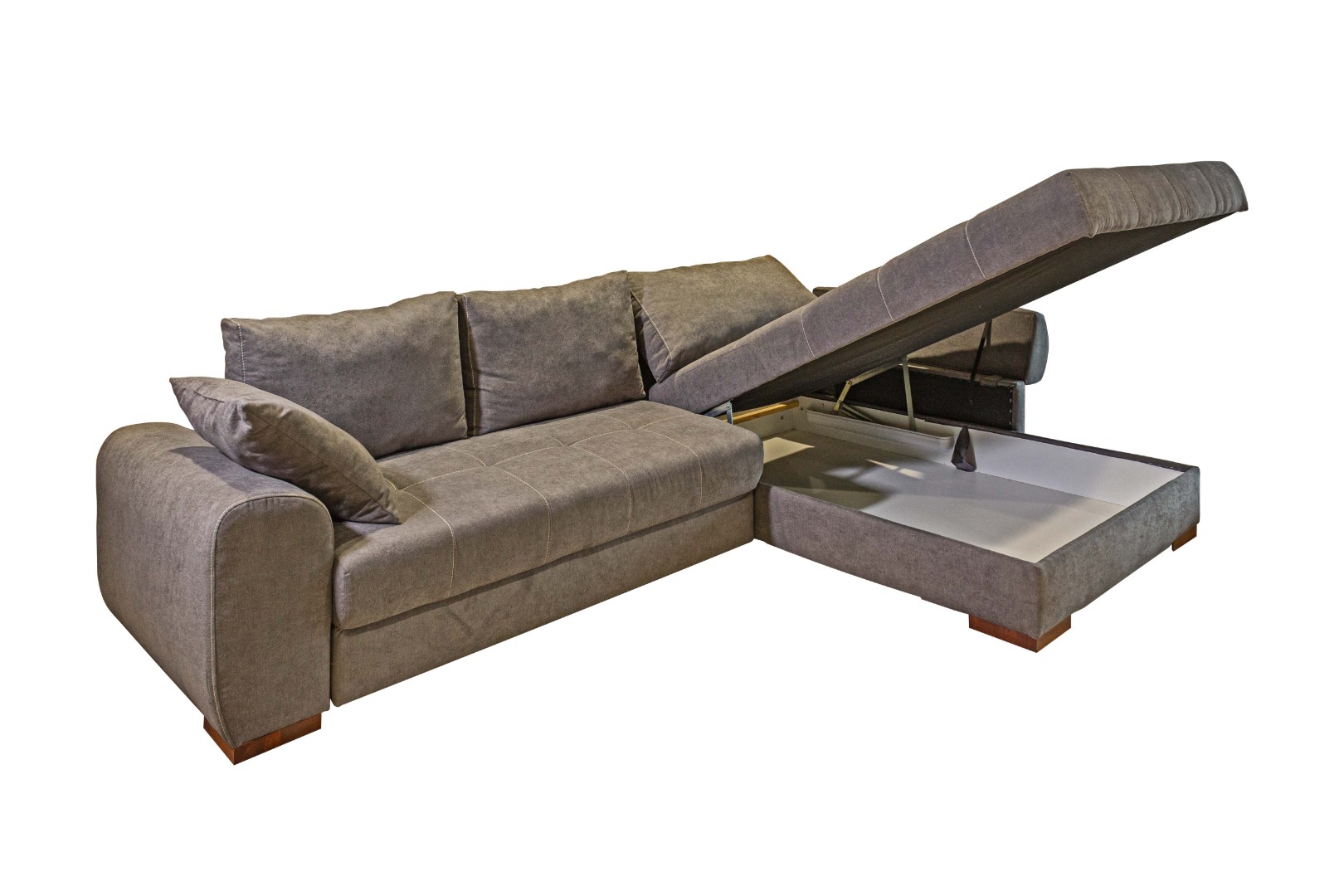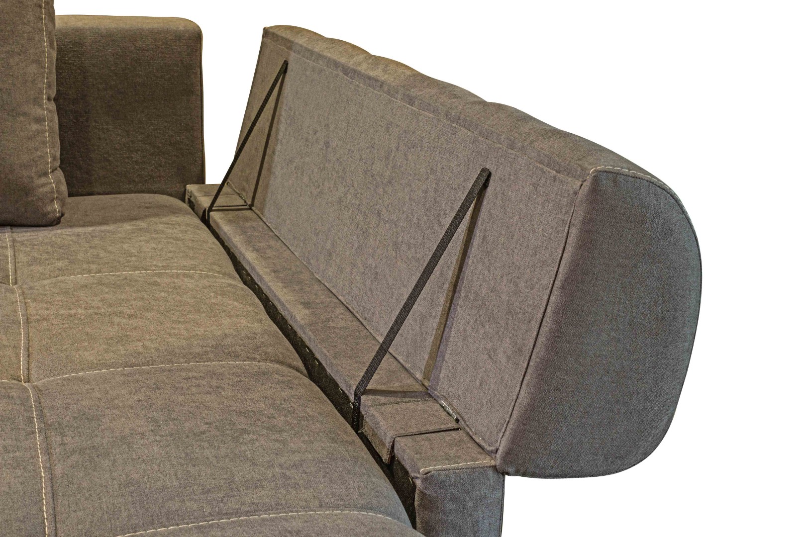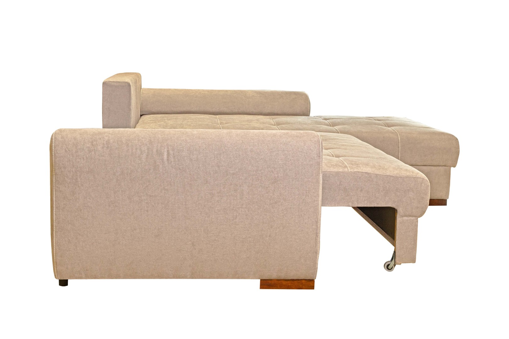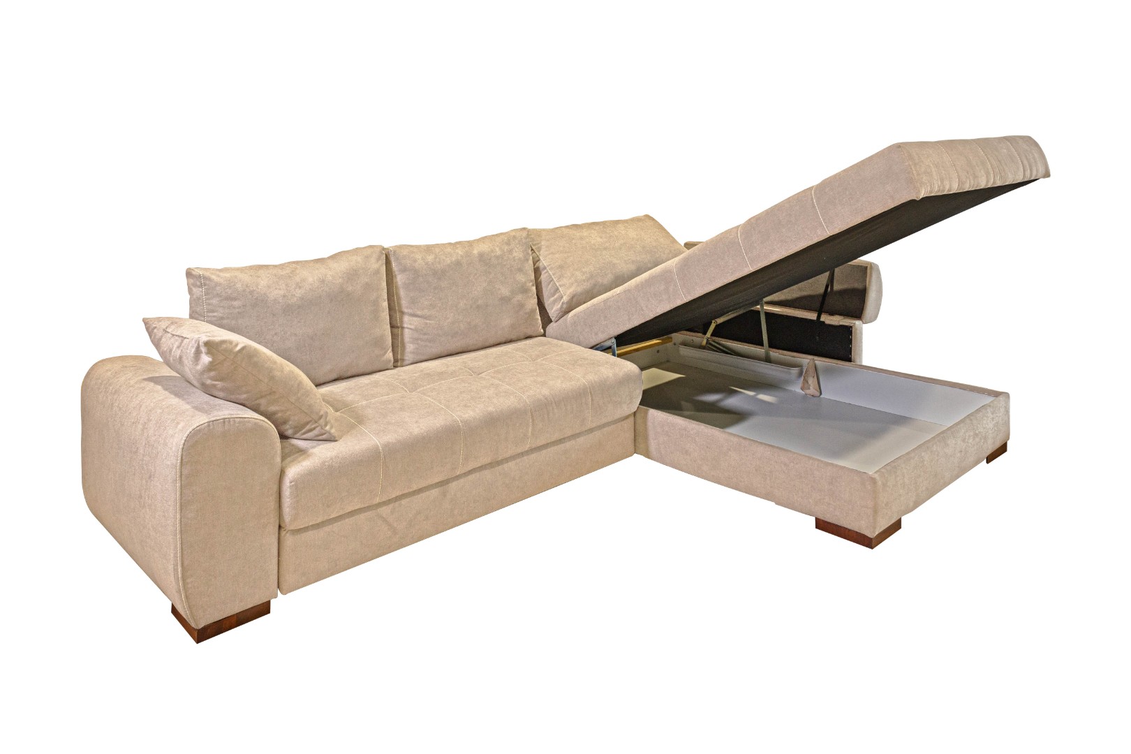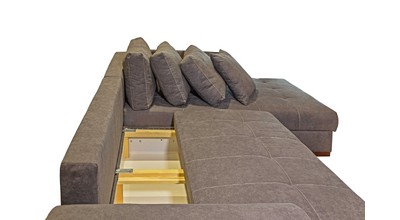 Два вместительных ящика (под выдвижной и угловой частями) позволяют разместить несколько комплектов постельного белья, одеяло, плед, а также дополнительные подушки.