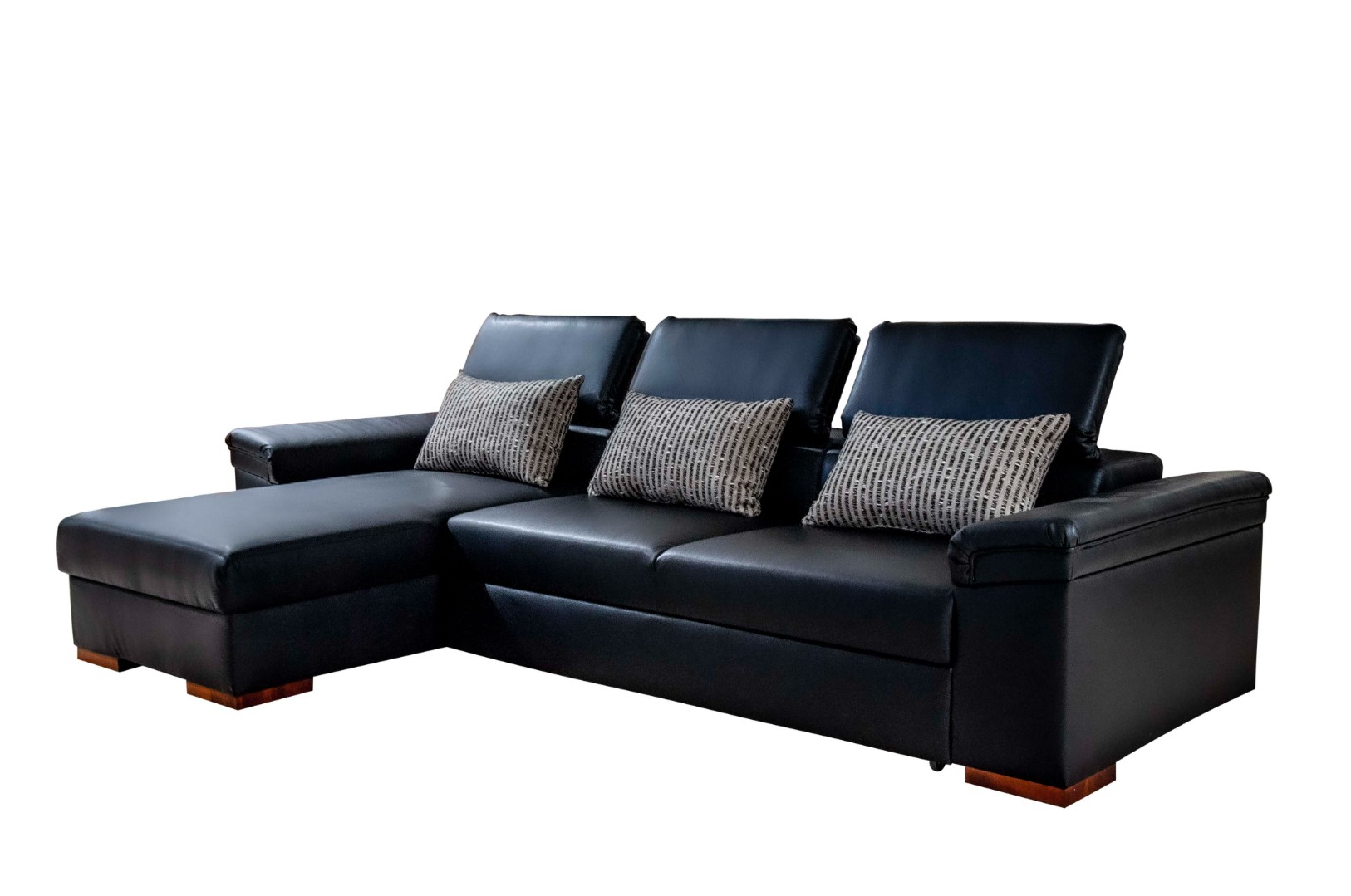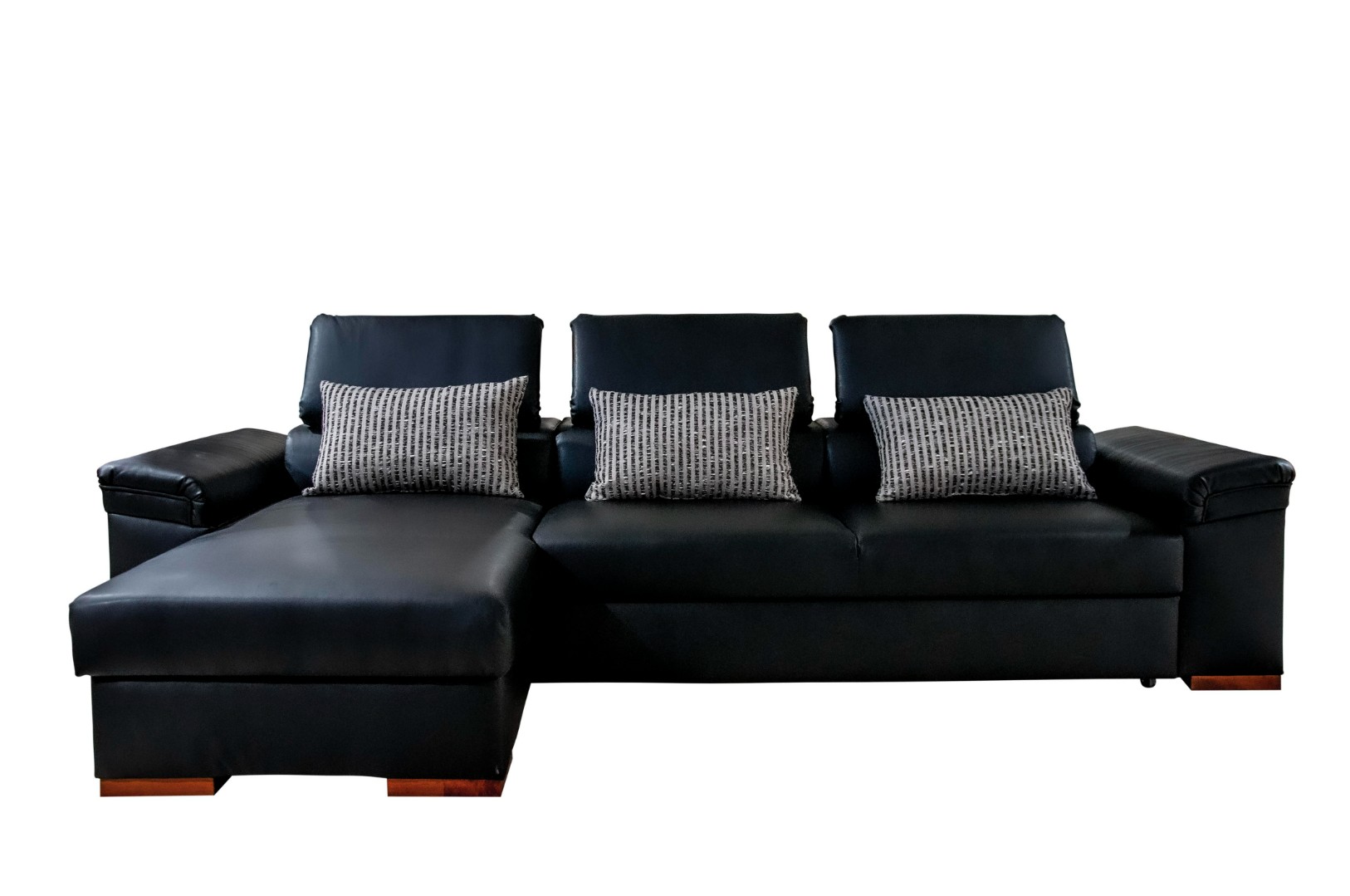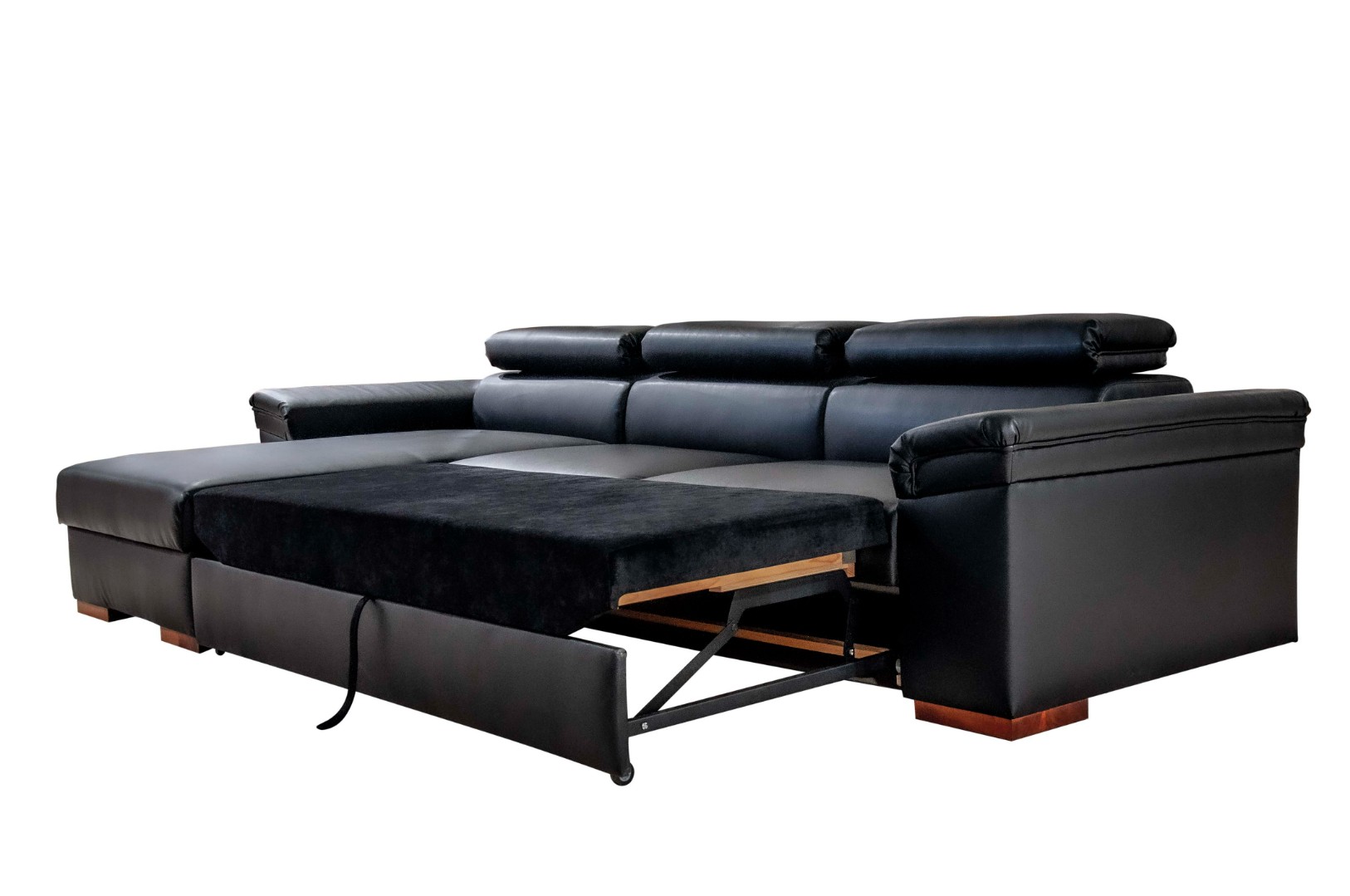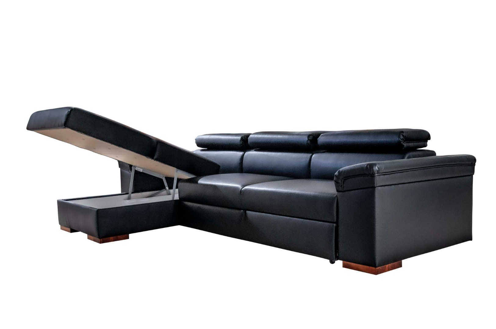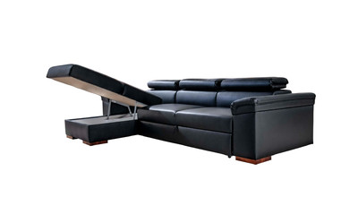 Вместительный ящик для спальных принадлежностей расположен под угловой частью дивана. Доступ к ящику обеспечивает подъемный механизм.