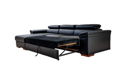 Чтобы трансформировать диван, нужно за скрытую петлю или ручку вытянуть спальный блок, который находится под сидением и, подняв его, установить на одном уровне с сидением. Результатом трансформации будет удобное, ровное, умеренно-жесткое спальное место.