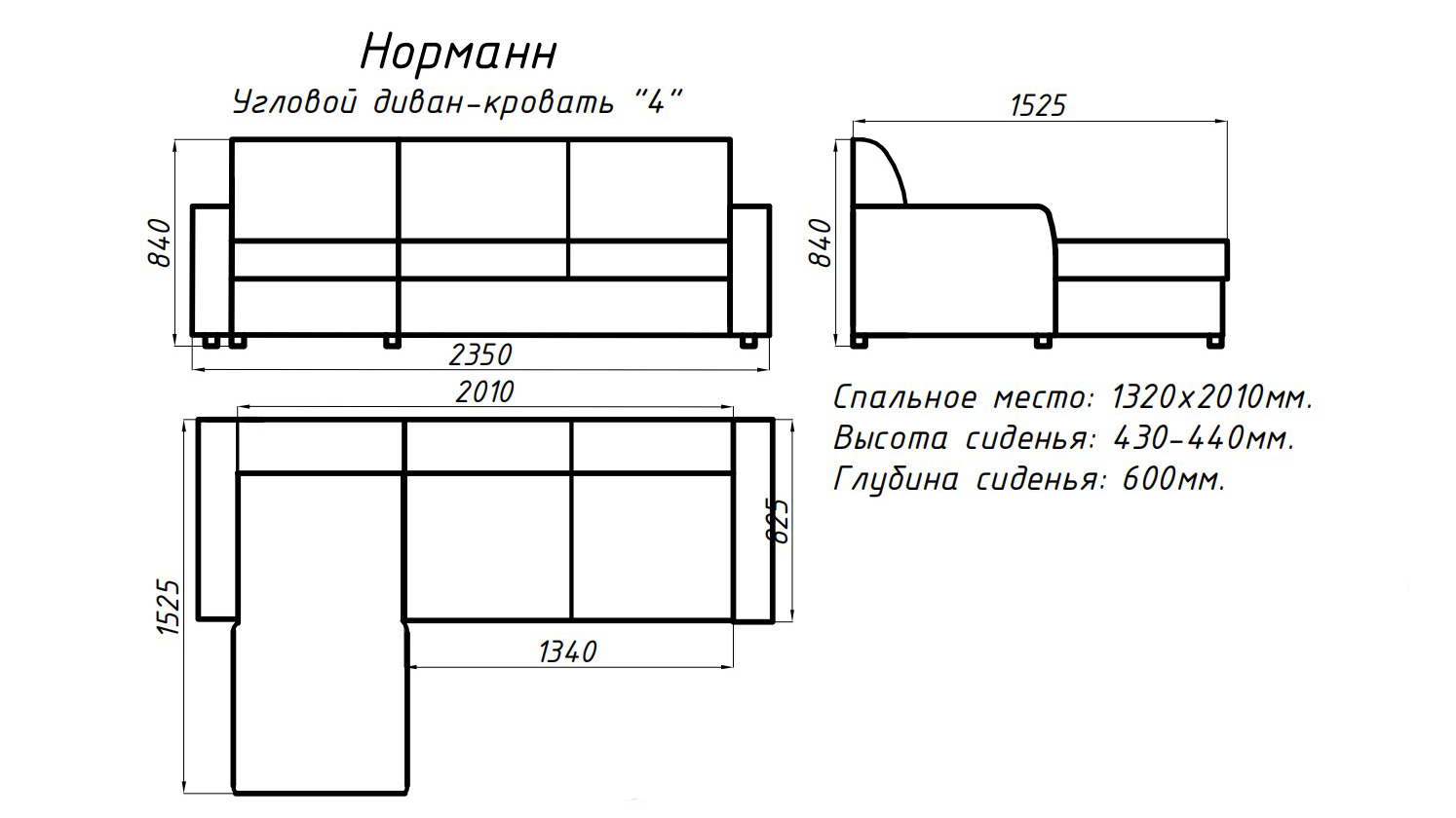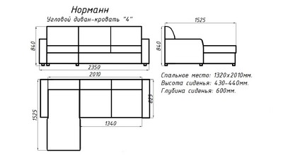 | Ширина спального места | 1320 мм |