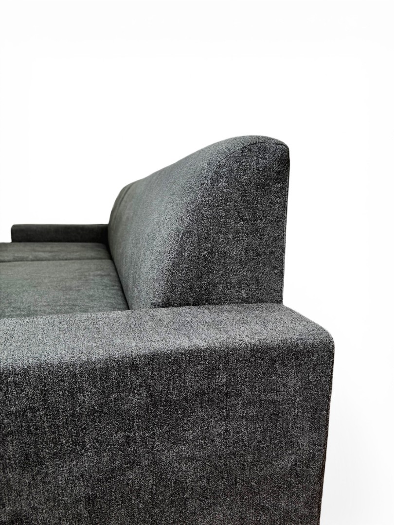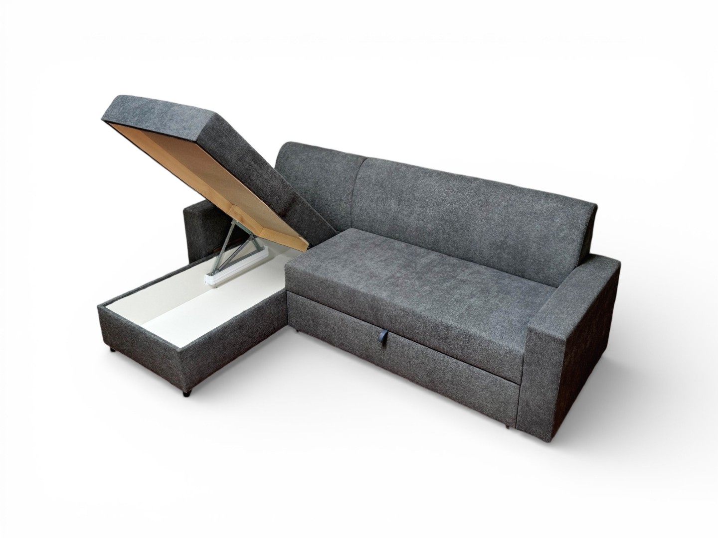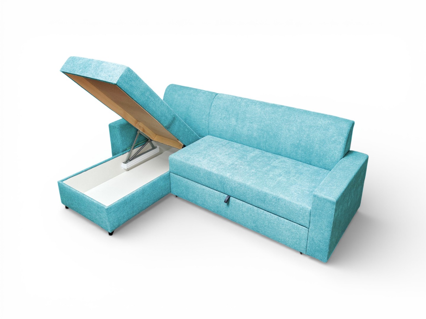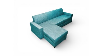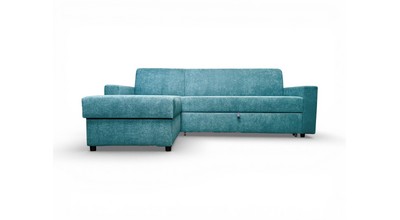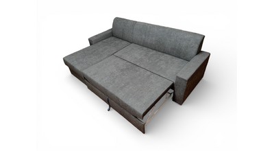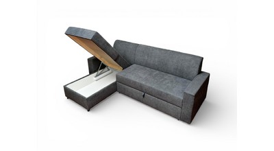 Вместительный ящик для спальных принадлежностей расположен под угловой частью дивана. Доступ к ящику обеспечивает подъемный механизм.