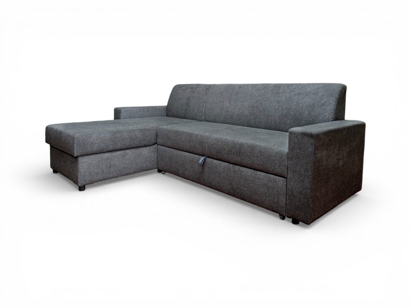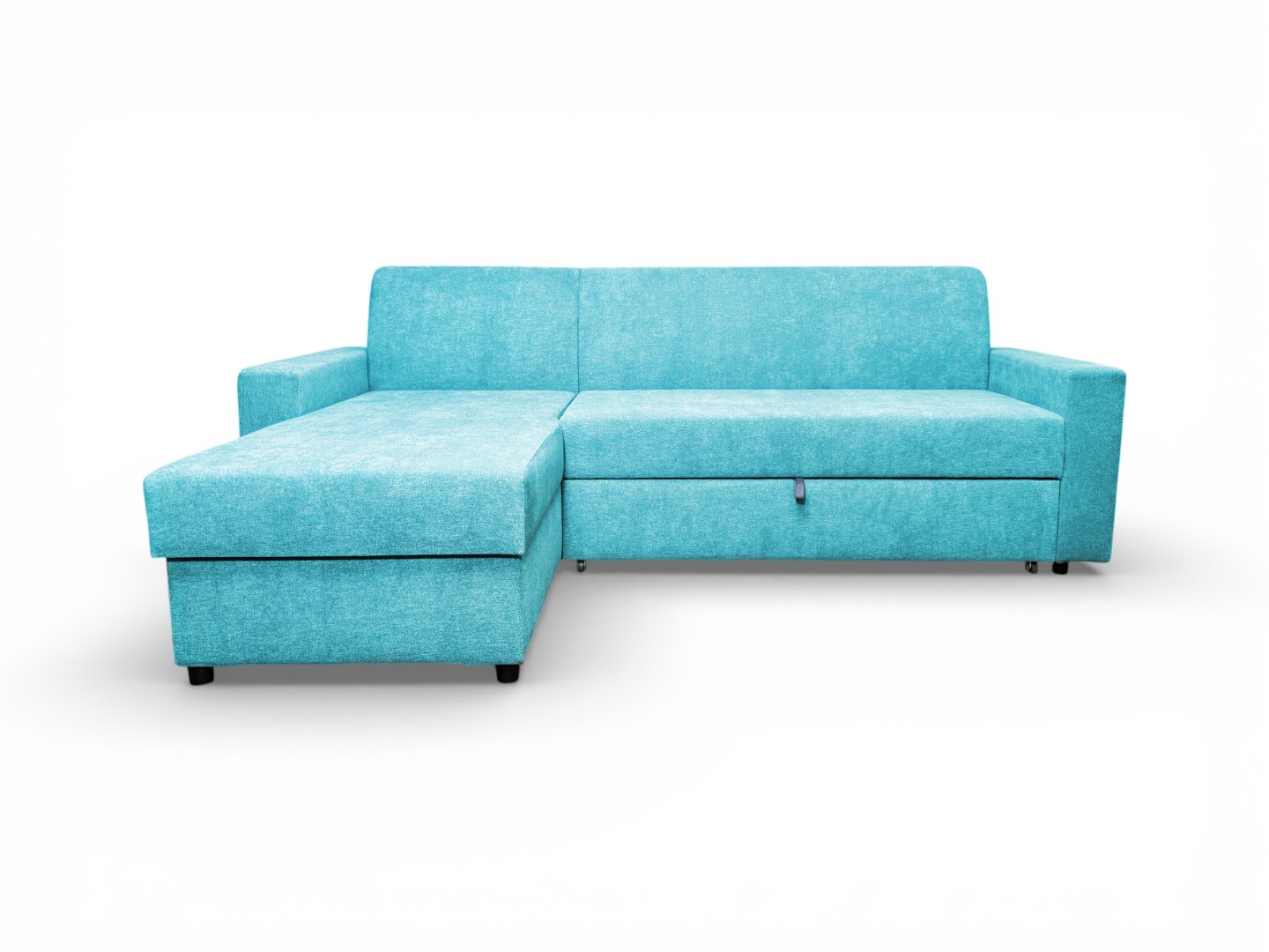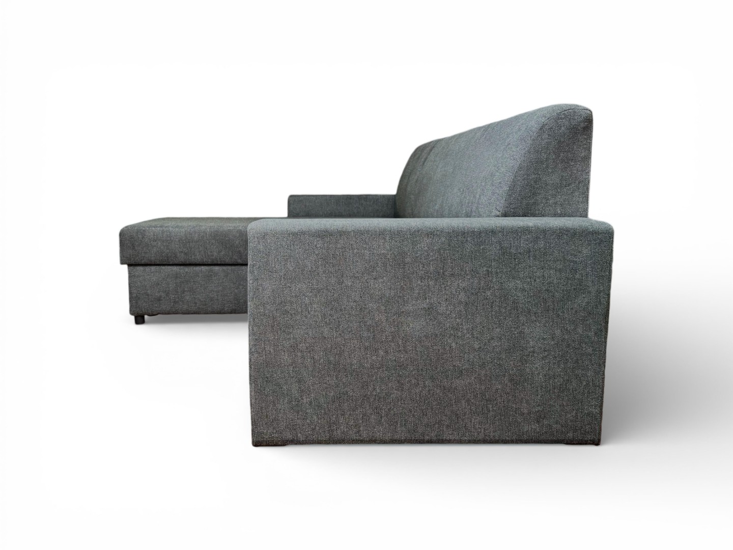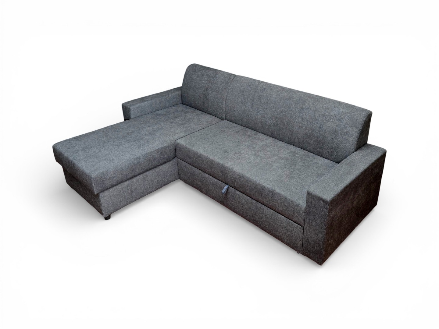 Вместительный ящик для спальных принадлежностей расположен под угловой частью дивана. Доступ к ящику обеспечивает подъемный механизм.