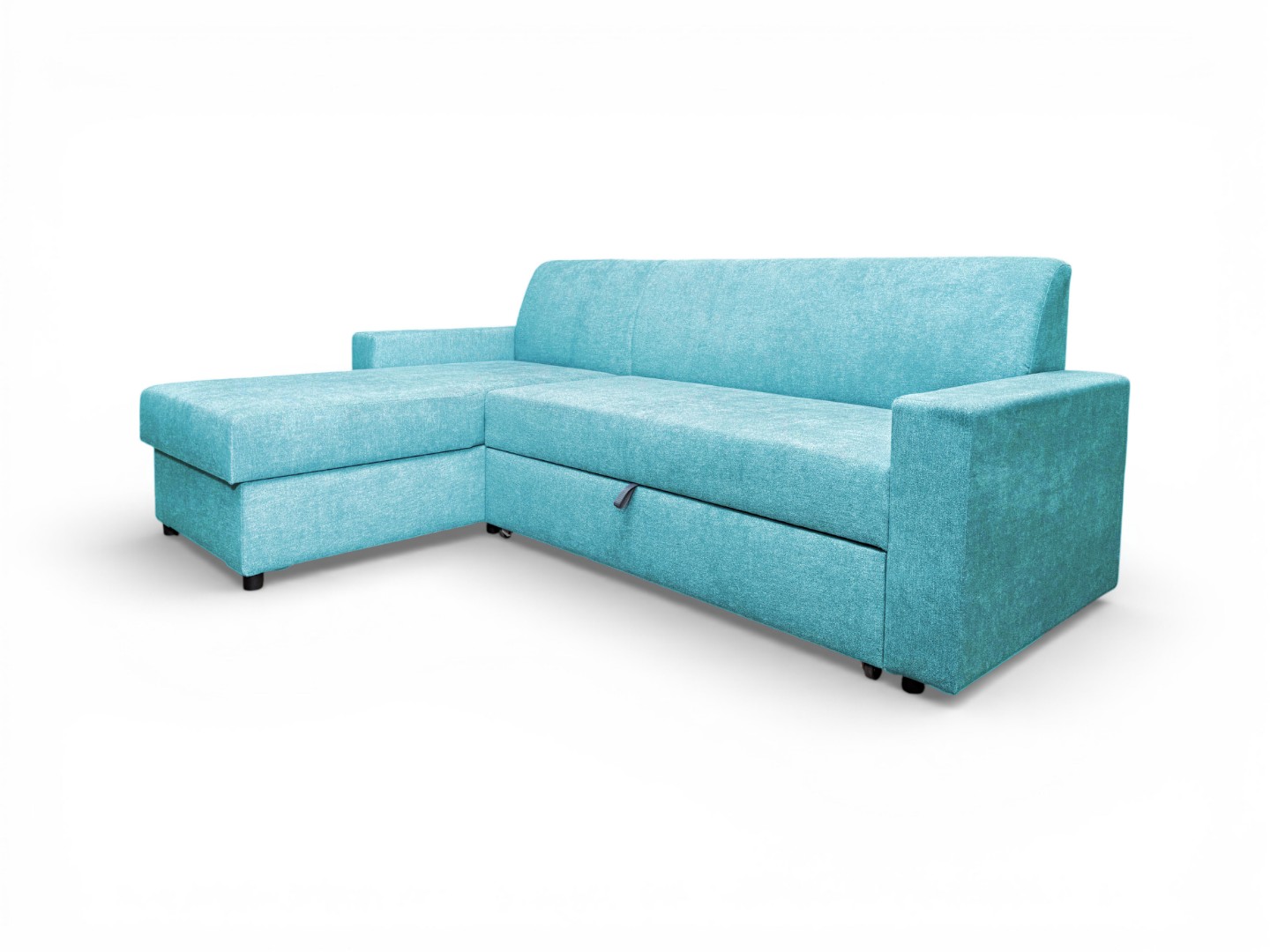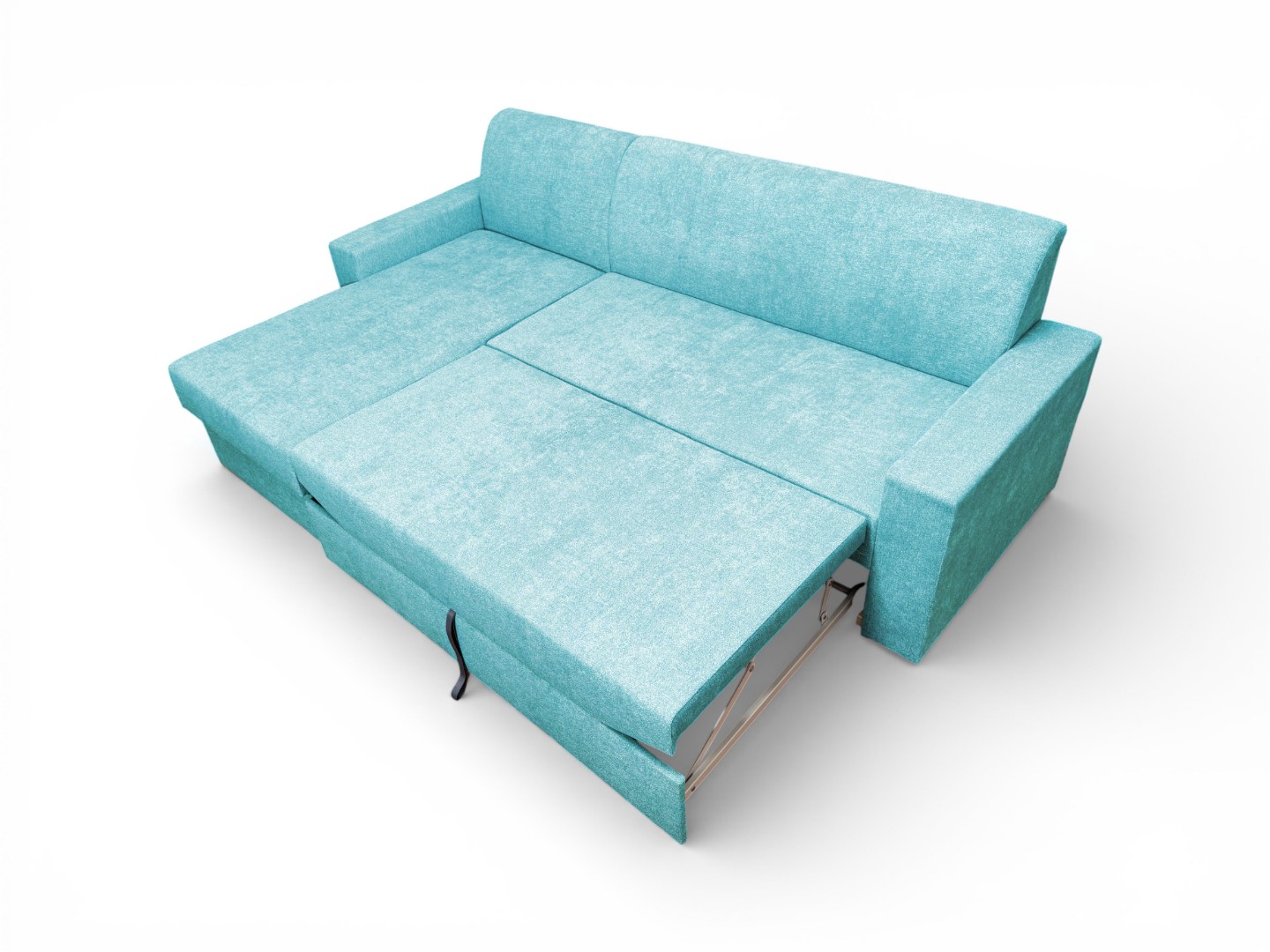 Чтобы трансформировать диван, нужно за скрытую петлю или ручку вытянуть спальный блок, который находится под сидением и, подняв его, установить на одном уровне с сидением. Результатом трансформации будет удобное, ровное, умеренно-жесткое спальное место.