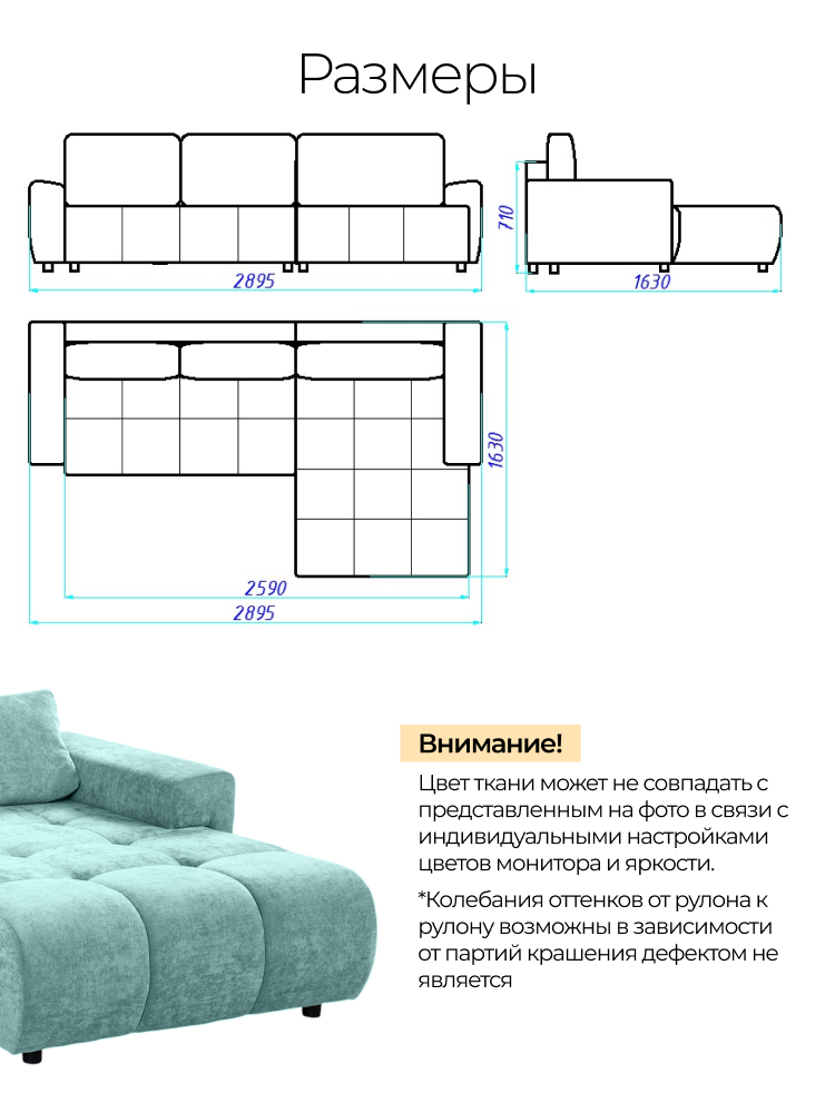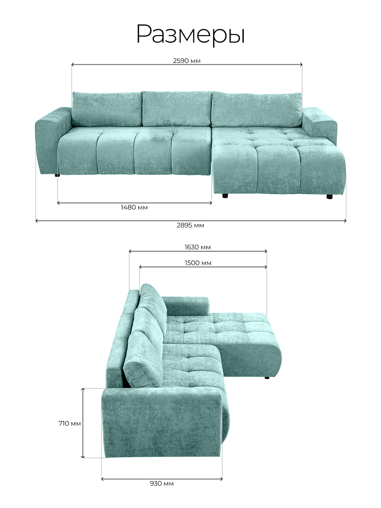 Диван поставляется в разобранном виде и несмотря на большие размеры частей легко перемещается через дверные проёмы.