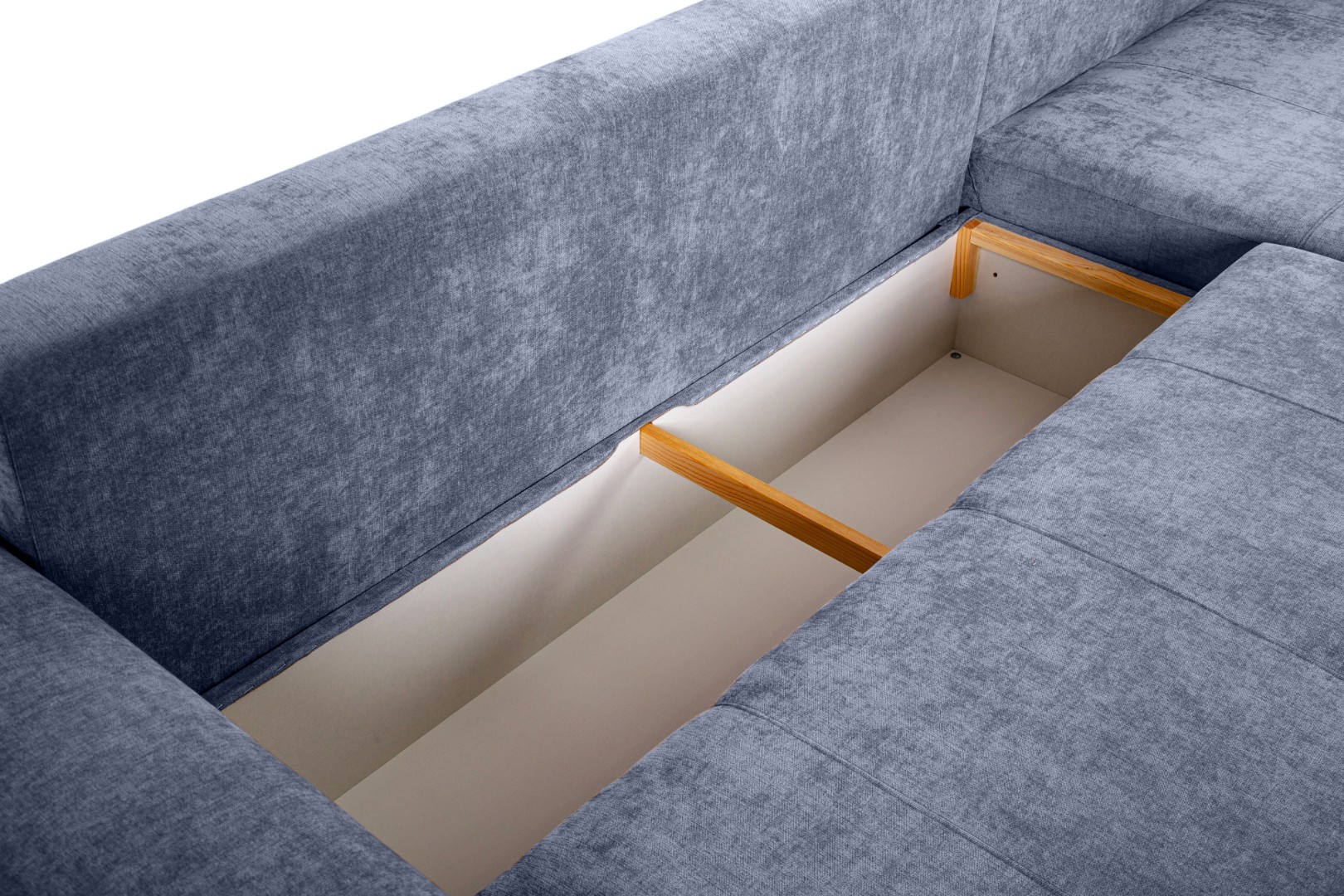 Модель  углового дивана со всех сторон обита тканью, а потому может быть использована  для зонирования пространства  в квартирах-студиях.