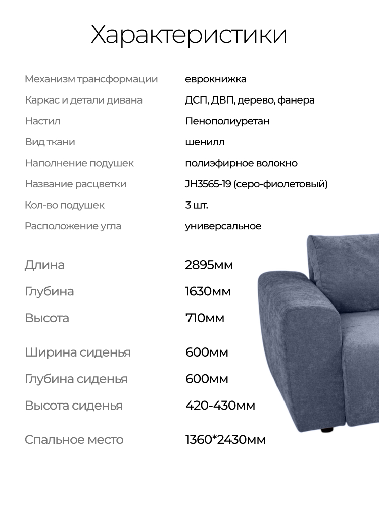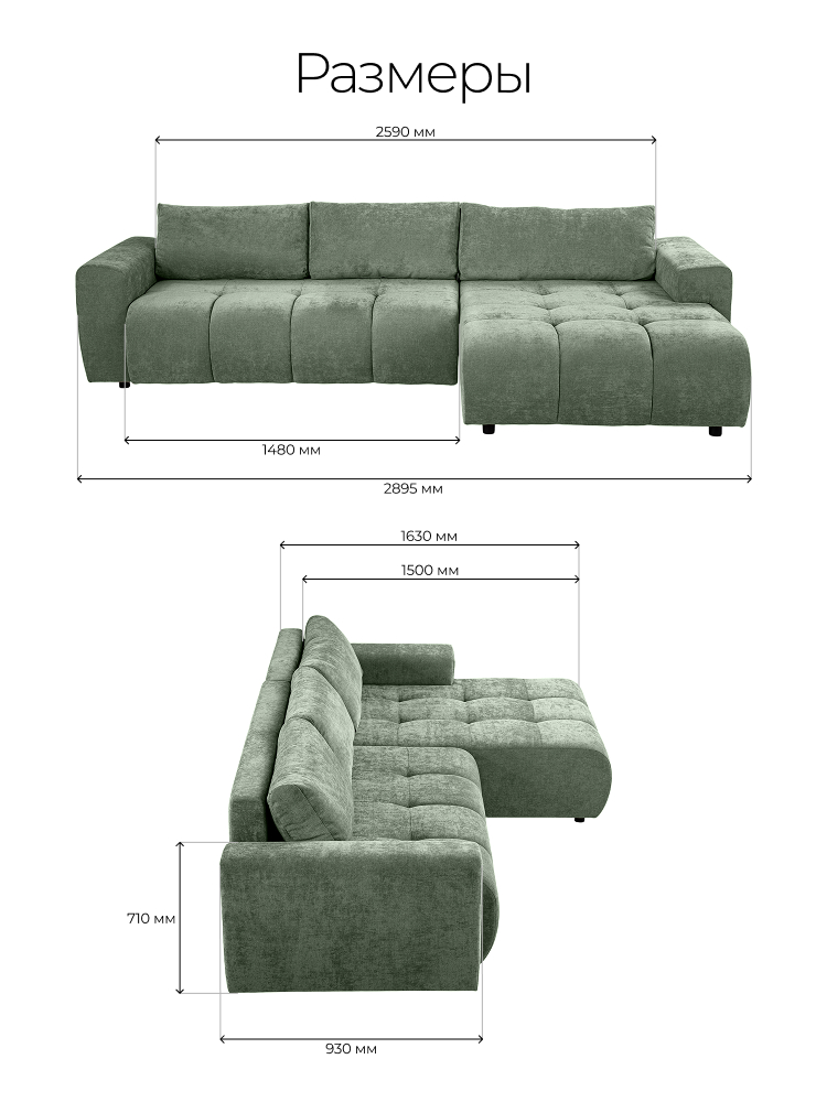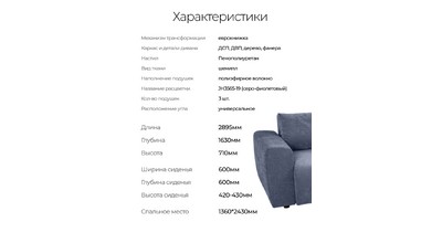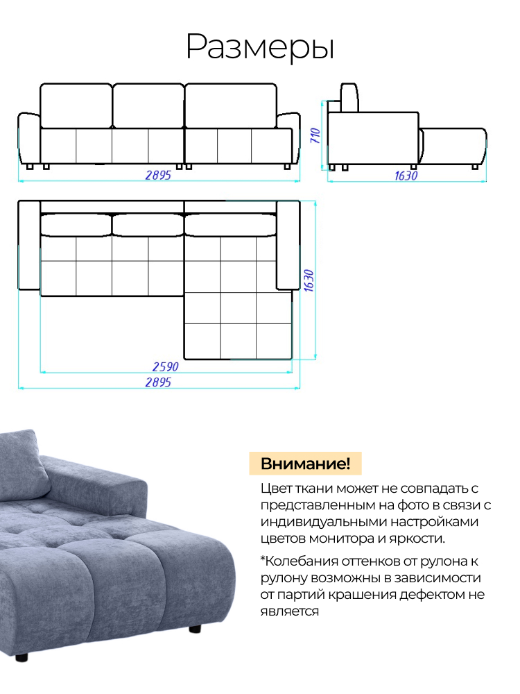 Диван поставляется в разобранном виде и несмотря на большие размеры частей легко перемещается через дверные проёмы.