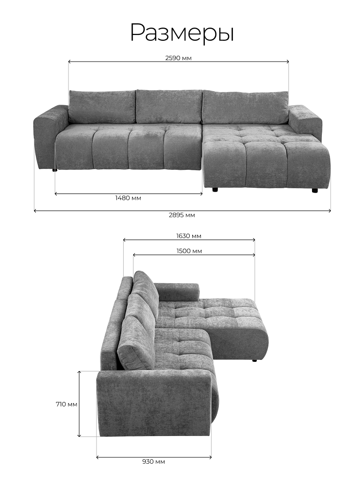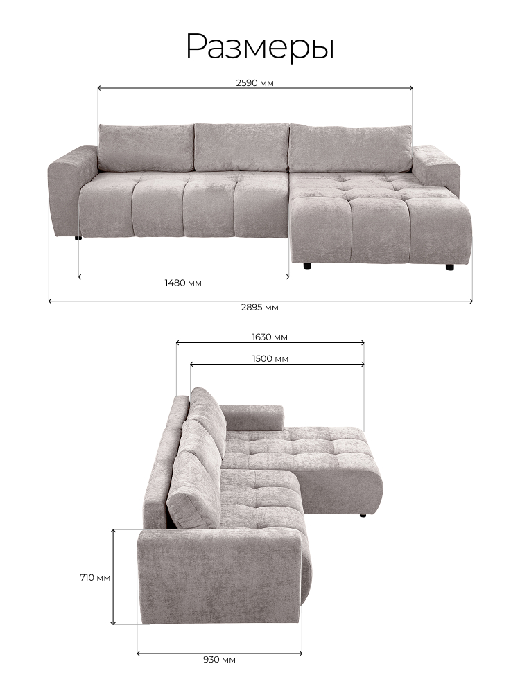 Диван поставляется в разобранном виде и несмотря на большие размеры частей легко перемещается через дверные проёмы.
