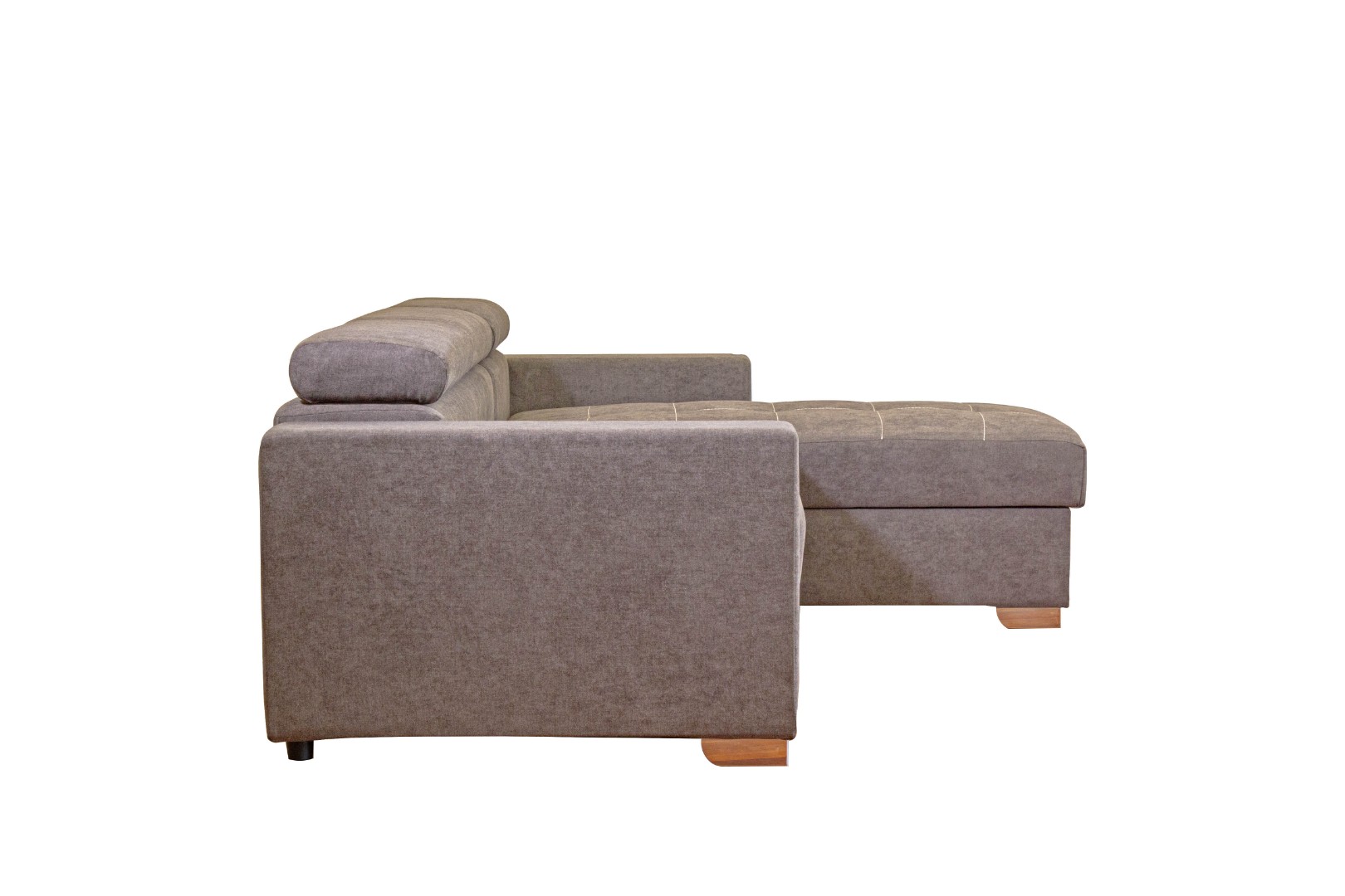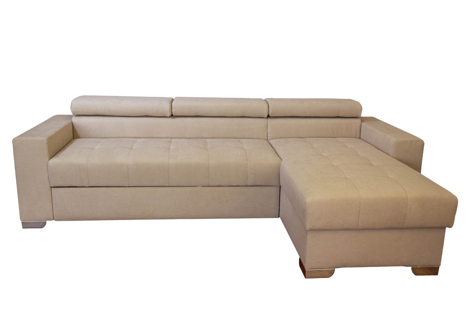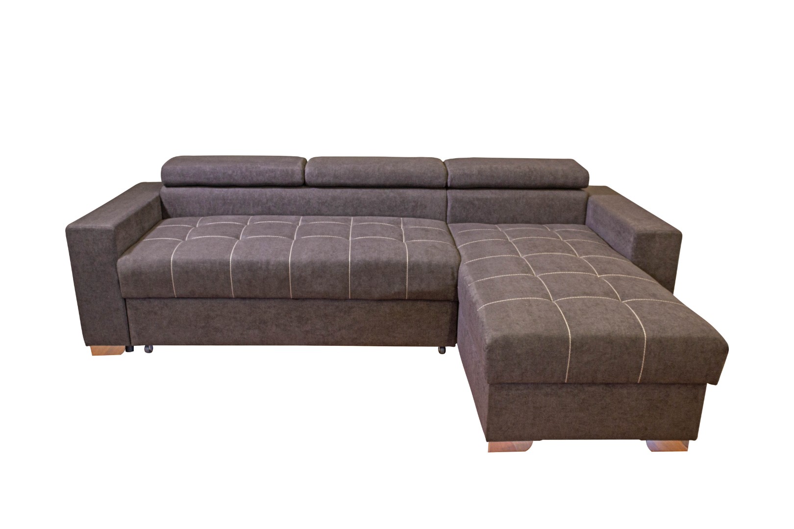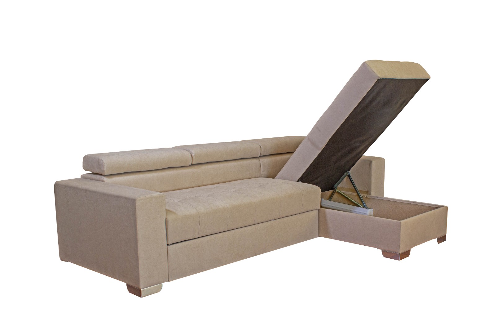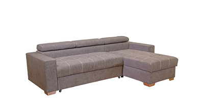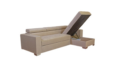 Вместительный ящик для постельных принадлежностей расположен под угловой частью дивана, а доступ к нему осуществляется через подъемный механизм. Модель с ППУ славится более объемным ящиком, что позволяет эффективно организовать хранение белья.