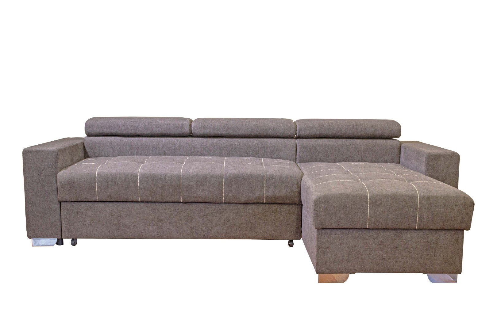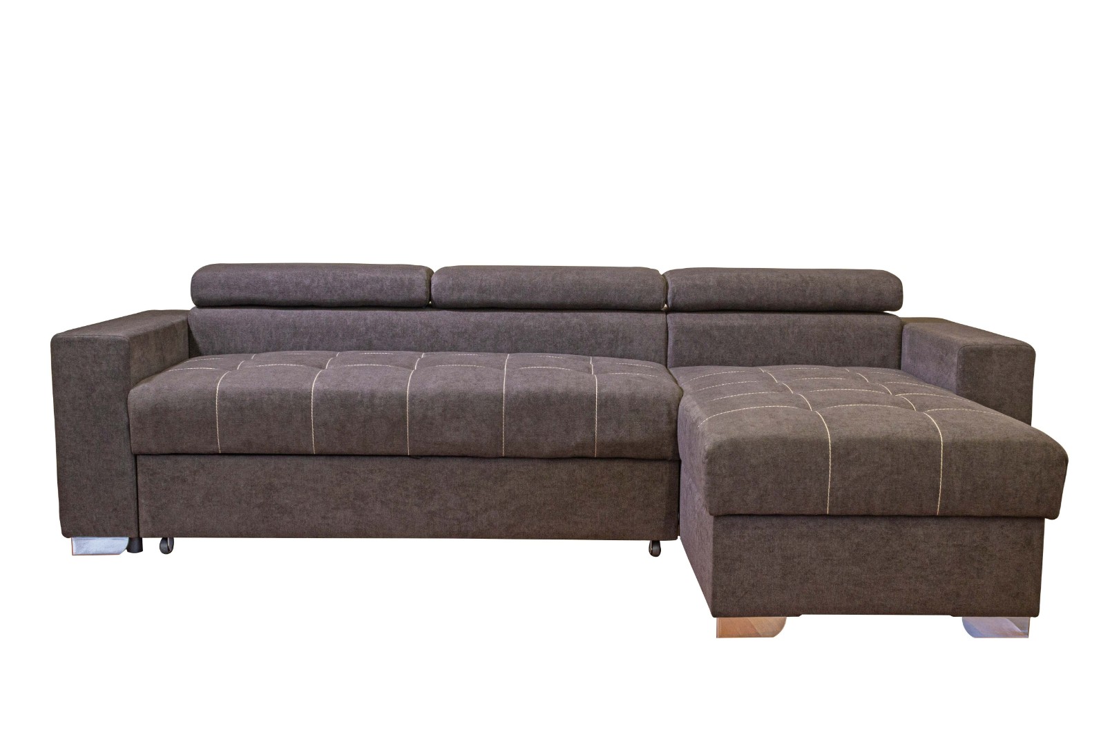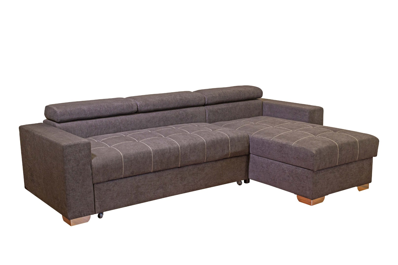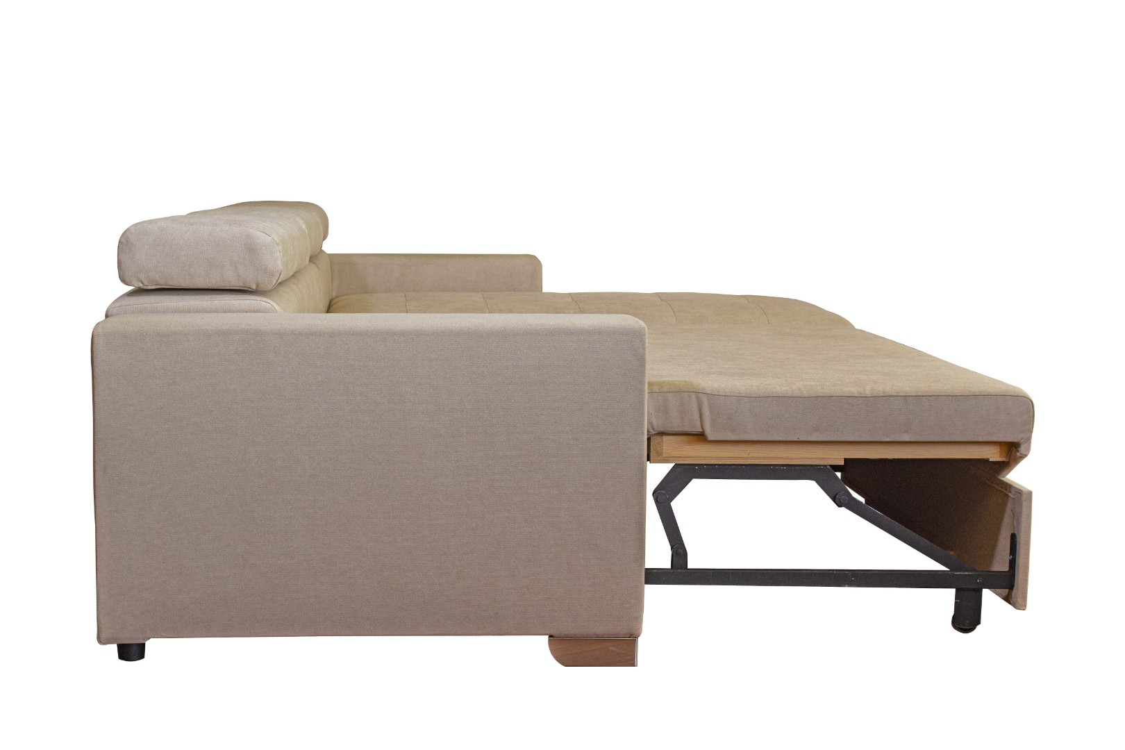 Вместительный ящик для постельных принадлежностей расположен под угловой частью дивана, а доступ к нему осуществляется через подъемный механизм. Модель с ППУ славится более объемным ящиком, что позволяет эффективно организовать хранение белья.