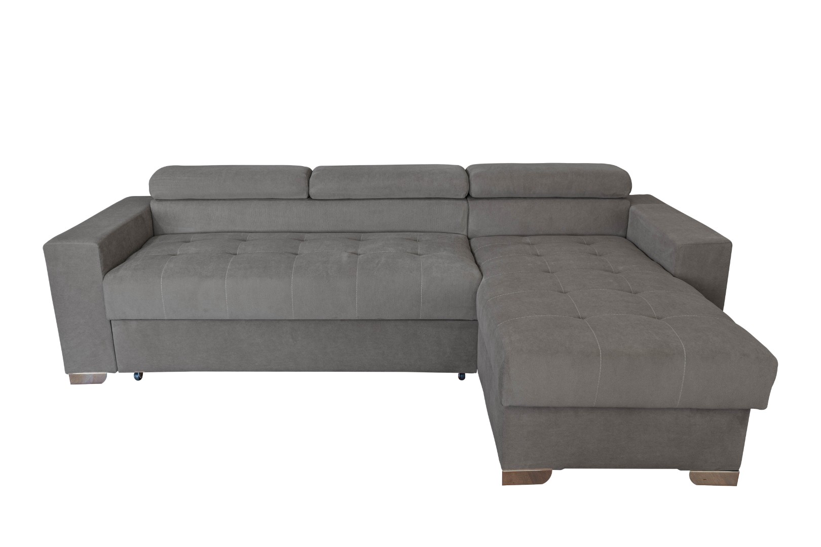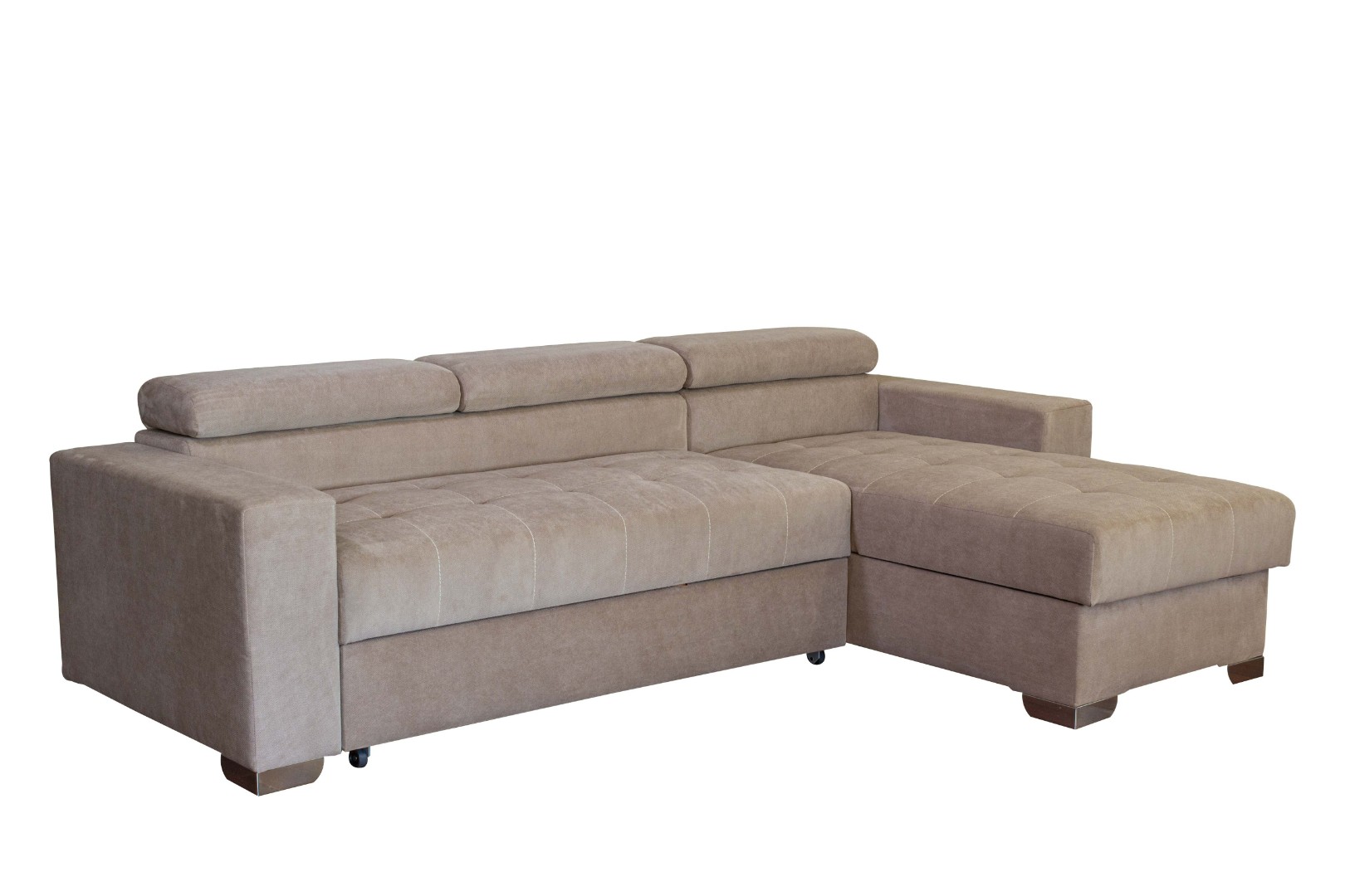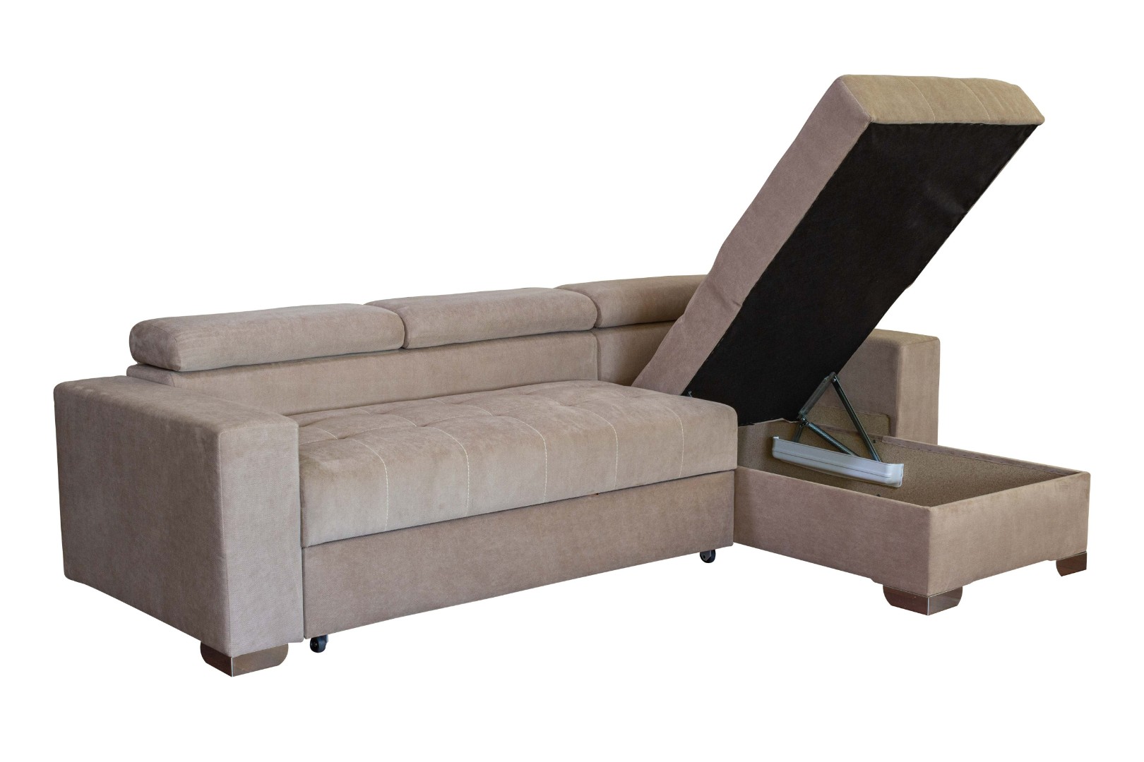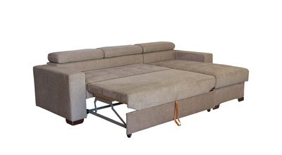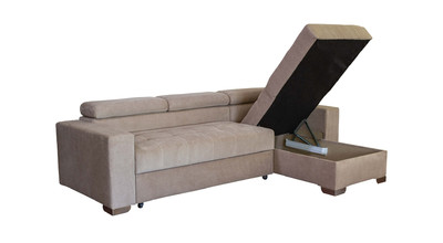 Вместительный ящик для постельных принадлежностей расположен под угловой частью дивана, а доступ к нему осуществляется через подъемный механизм. Модель с ППУ славится более объемным ящиком, что позволяет эффективно организовать хранение белья.