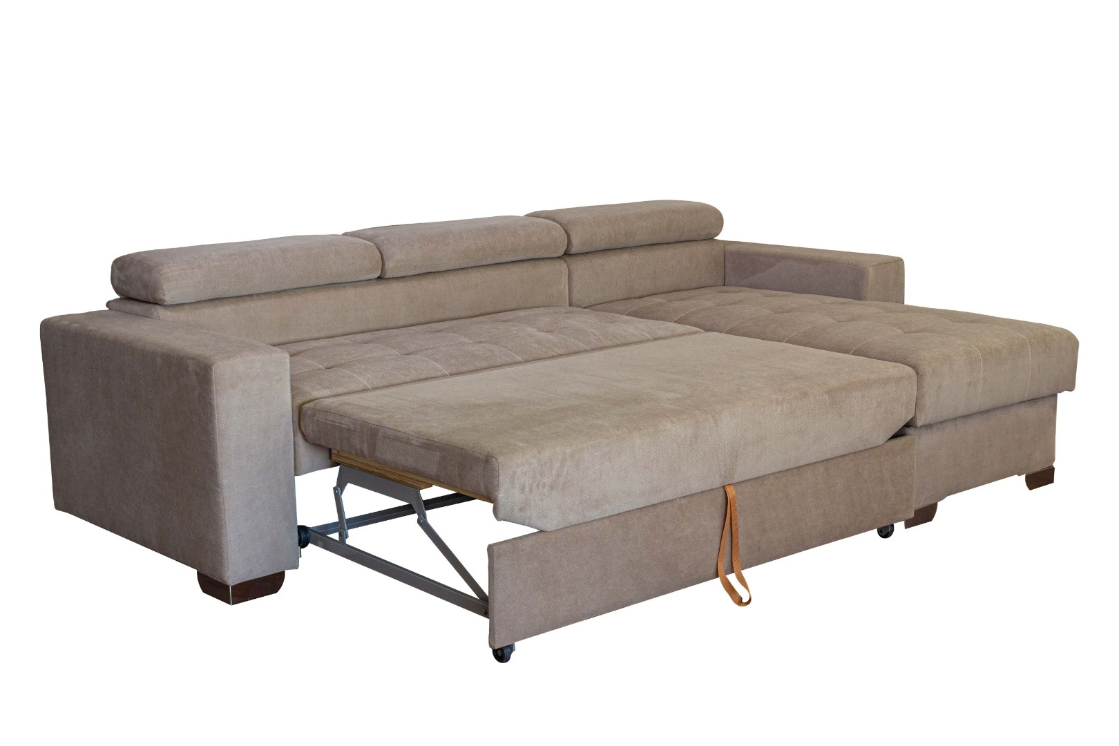 Угловой диван «Hemmet» легко трансформируется в просторную кровать с помощью выкатного механизма «Дельфин», предлагая размеры спального места 130 см на 211 см. Это делает его отличным вариантом для тех, кто хочет оптимально использовать пространство без потери уюта.