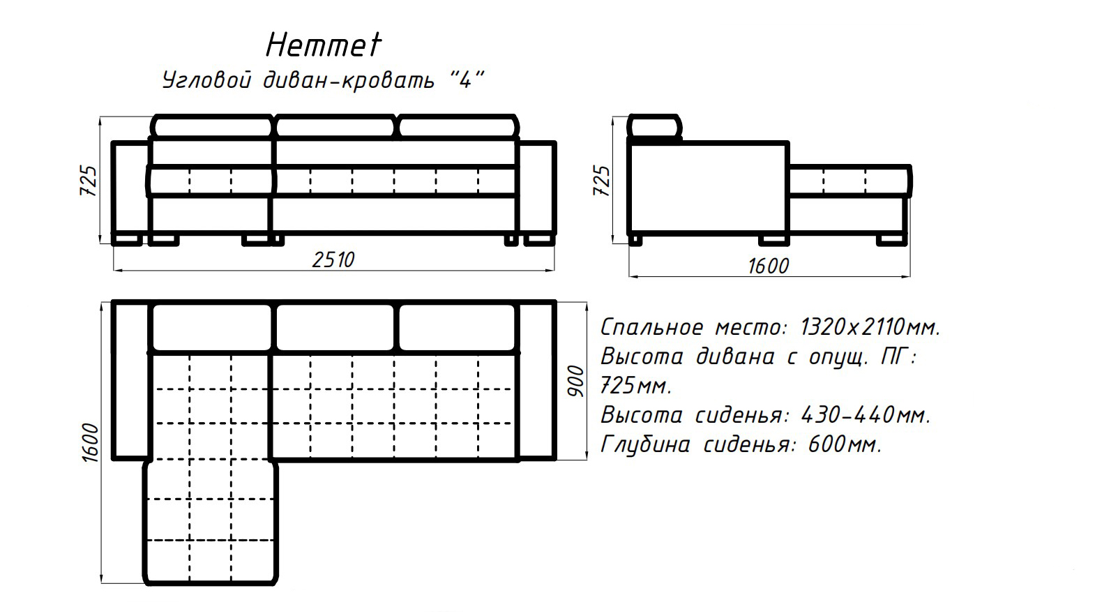 | Ширина | 1610 мм |