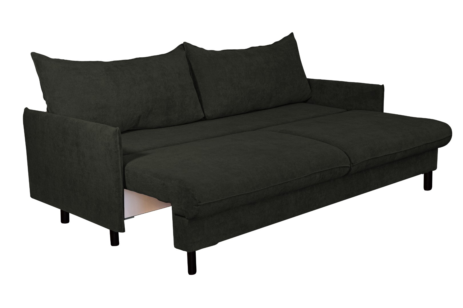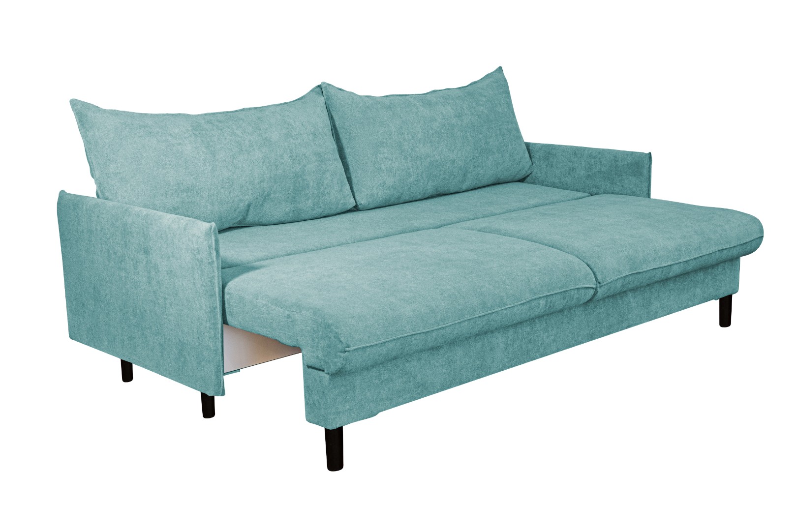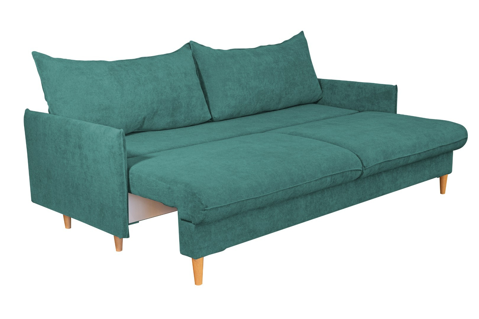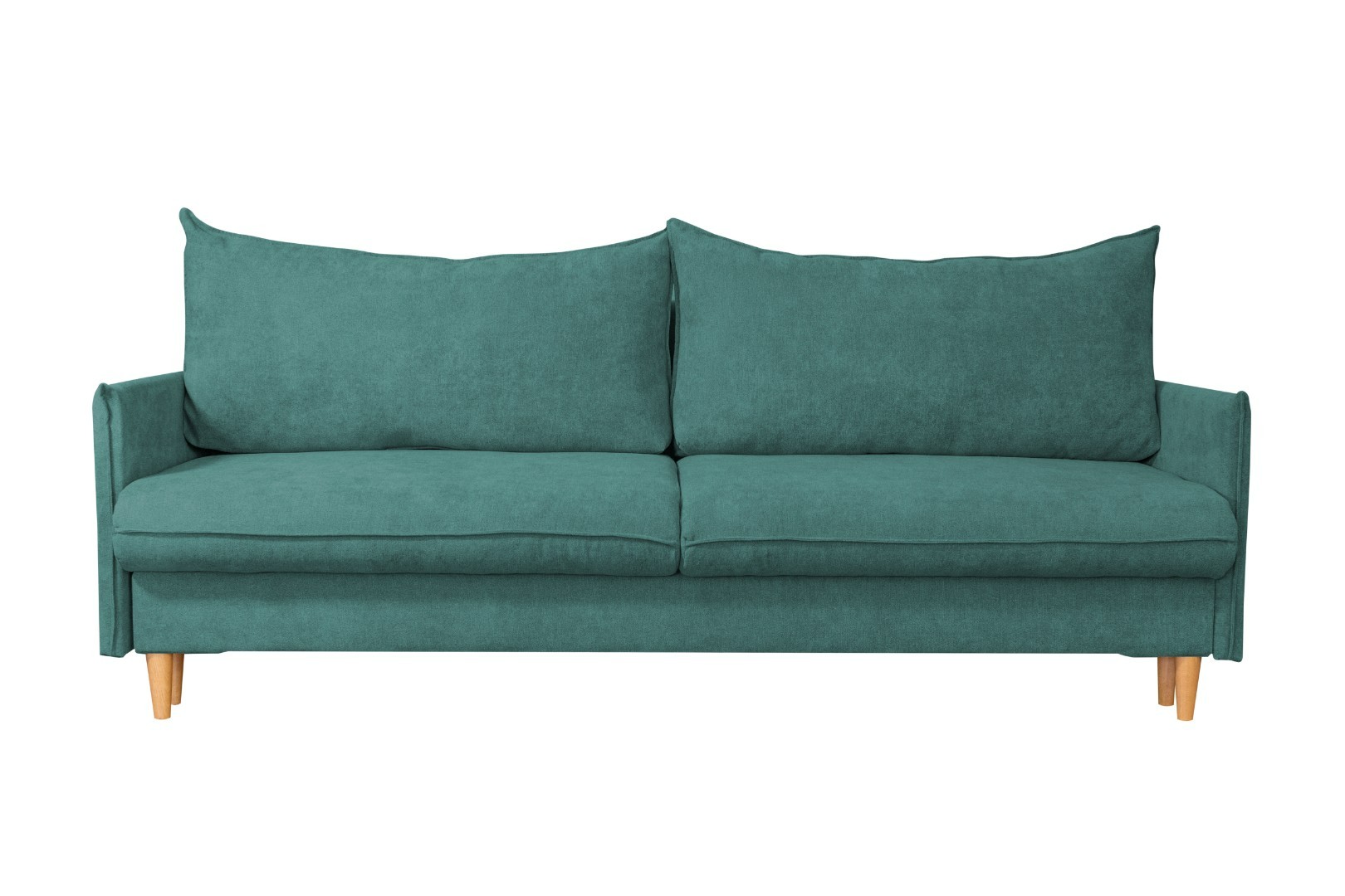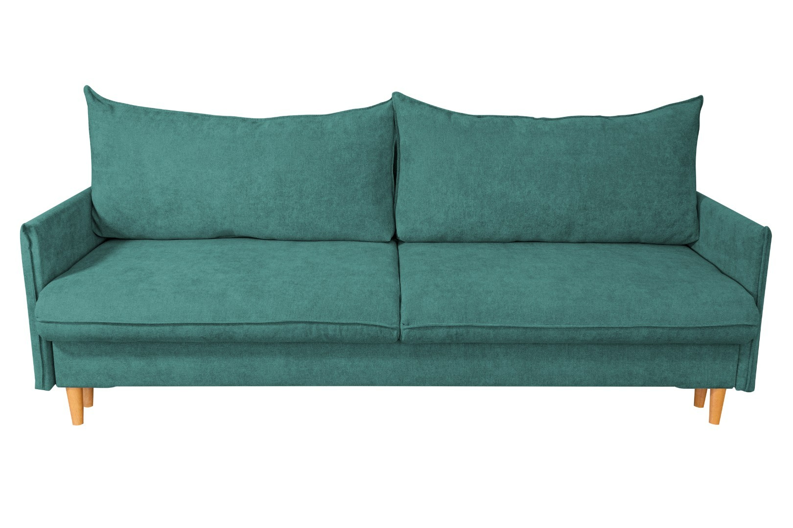 Мягкий и удобный прямой диван – оснащен простым и надежным механизмом трансформации, эта модель легко раскладывается в просторное и ровное место для сна. Материал обивки – практичный и приятный на ощупь, он надолго сохраняет свой прежний вид, не истирается и легко поддается уходу. Стильная расцветка дивана гармонично поддержит общее оформление и позволит создать неповторимый интерьер. Высокие деревянные опоры придают дивану особый элегантный и современный стиль. Удобства дополняют две большие и мягкие подушки, образующие спинку.