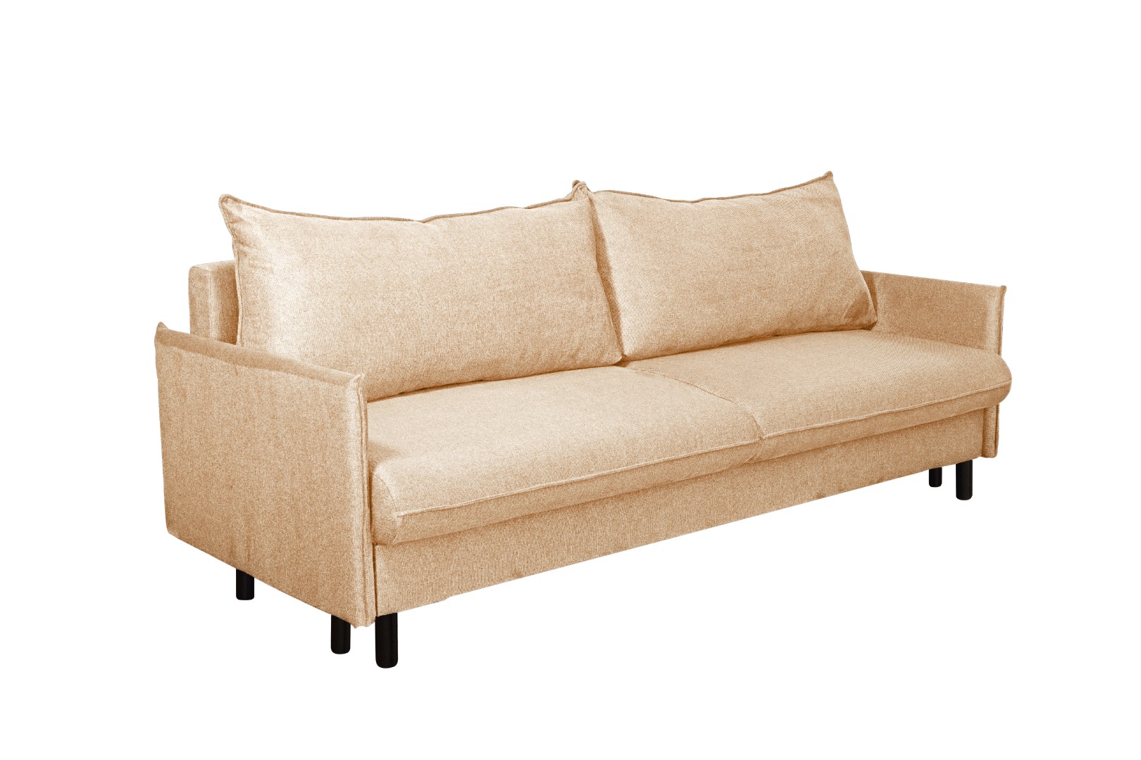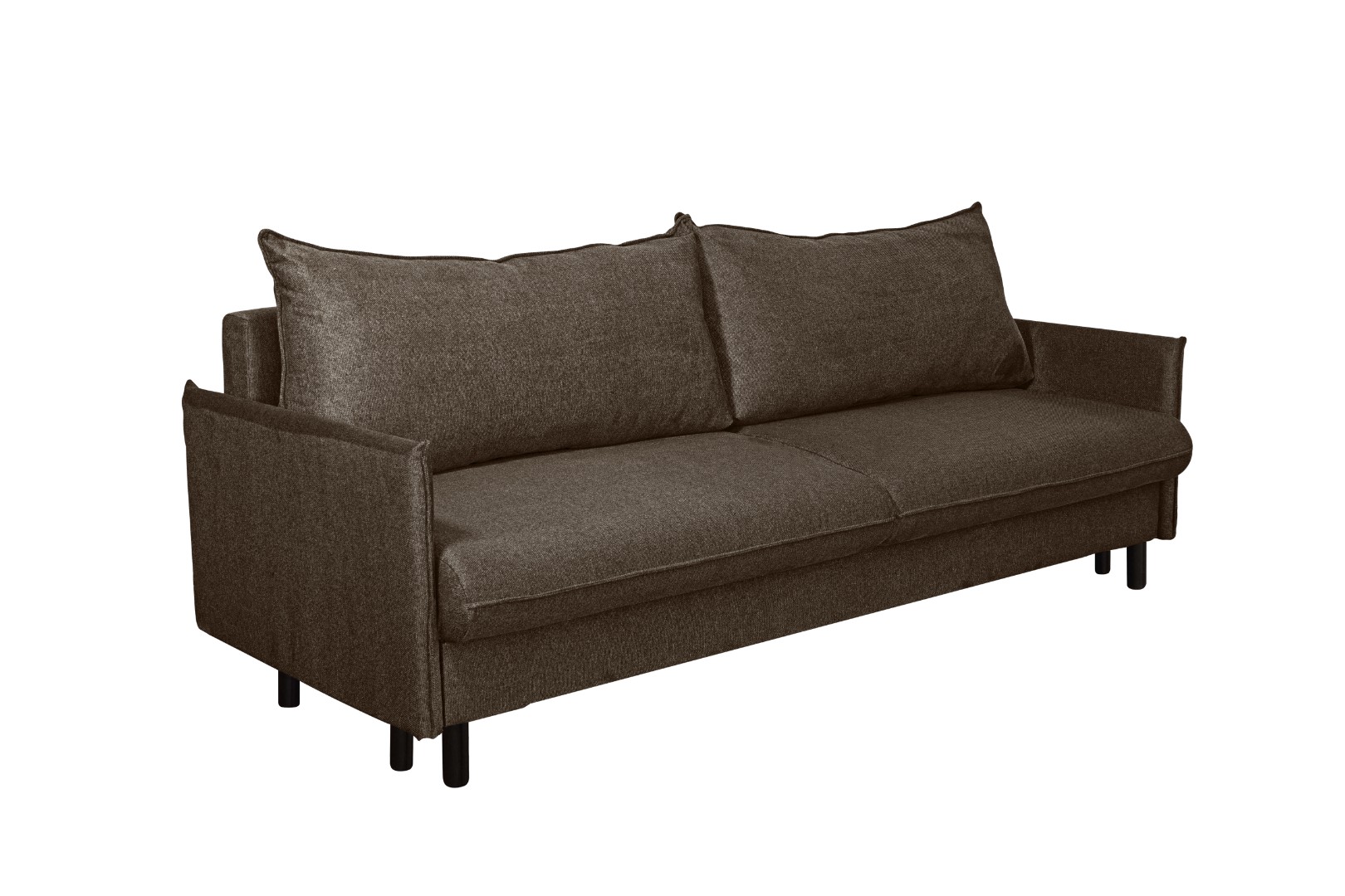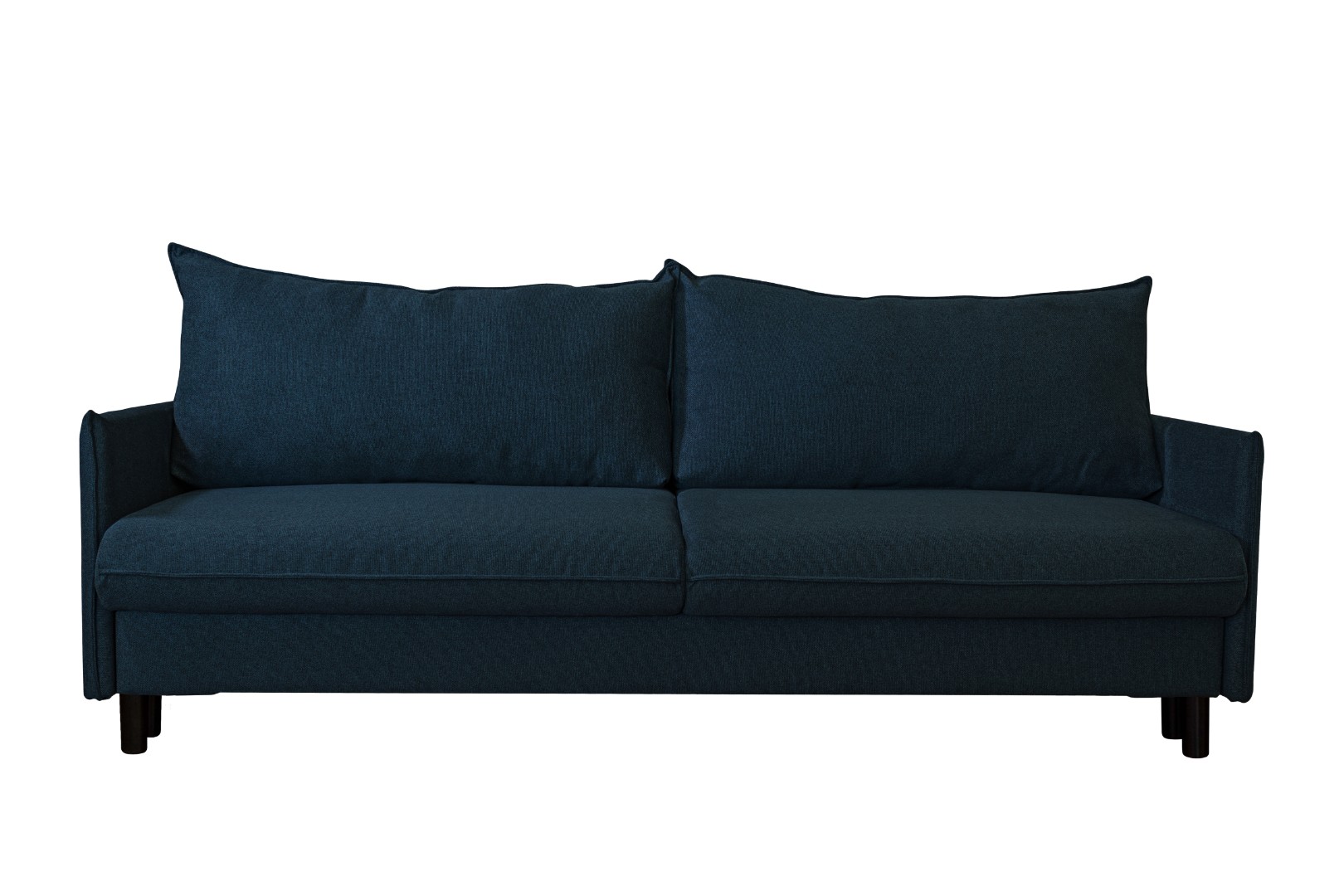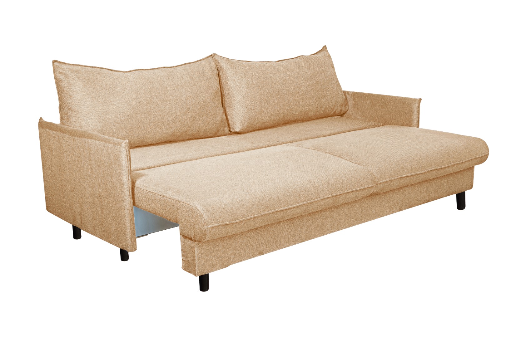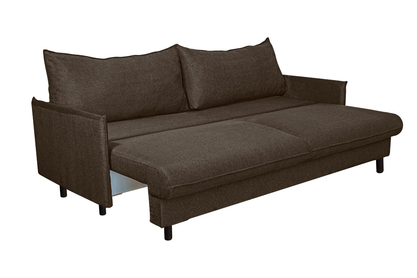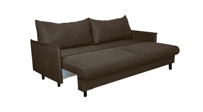 Мягкий и удобный прямой диван – оснащен простым и надежным механизмом трансформации, эта модель легко раскладывается в просторное и ровное место для сна. Материал обивки – практичный и приятный на ощупь, он надолго сохраняет свой прежний вид, не истирается и легко поддается уходу. Стильная расцветка дивана гармонично поддержит общее оформление и позволит создать неповторимый интерьер. Высокие деревянные опоры придают дивану особый элегантный и современный стиль. Удобства дополняют две большие и мягкие подушки, образующие спинку.