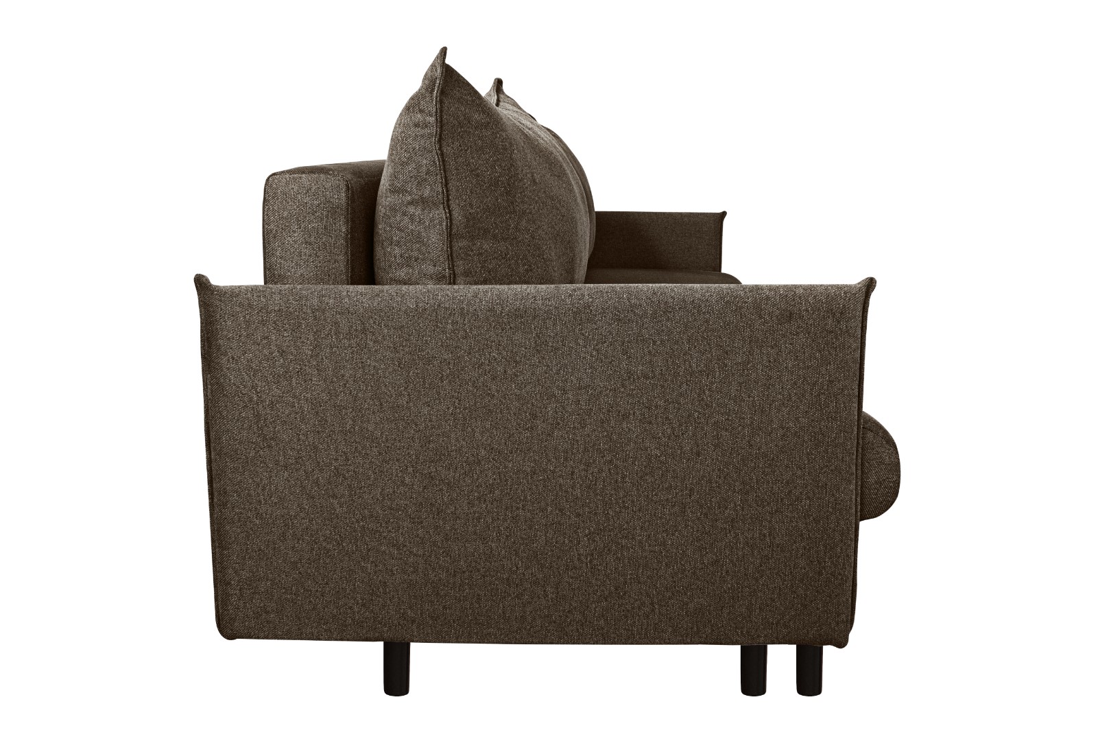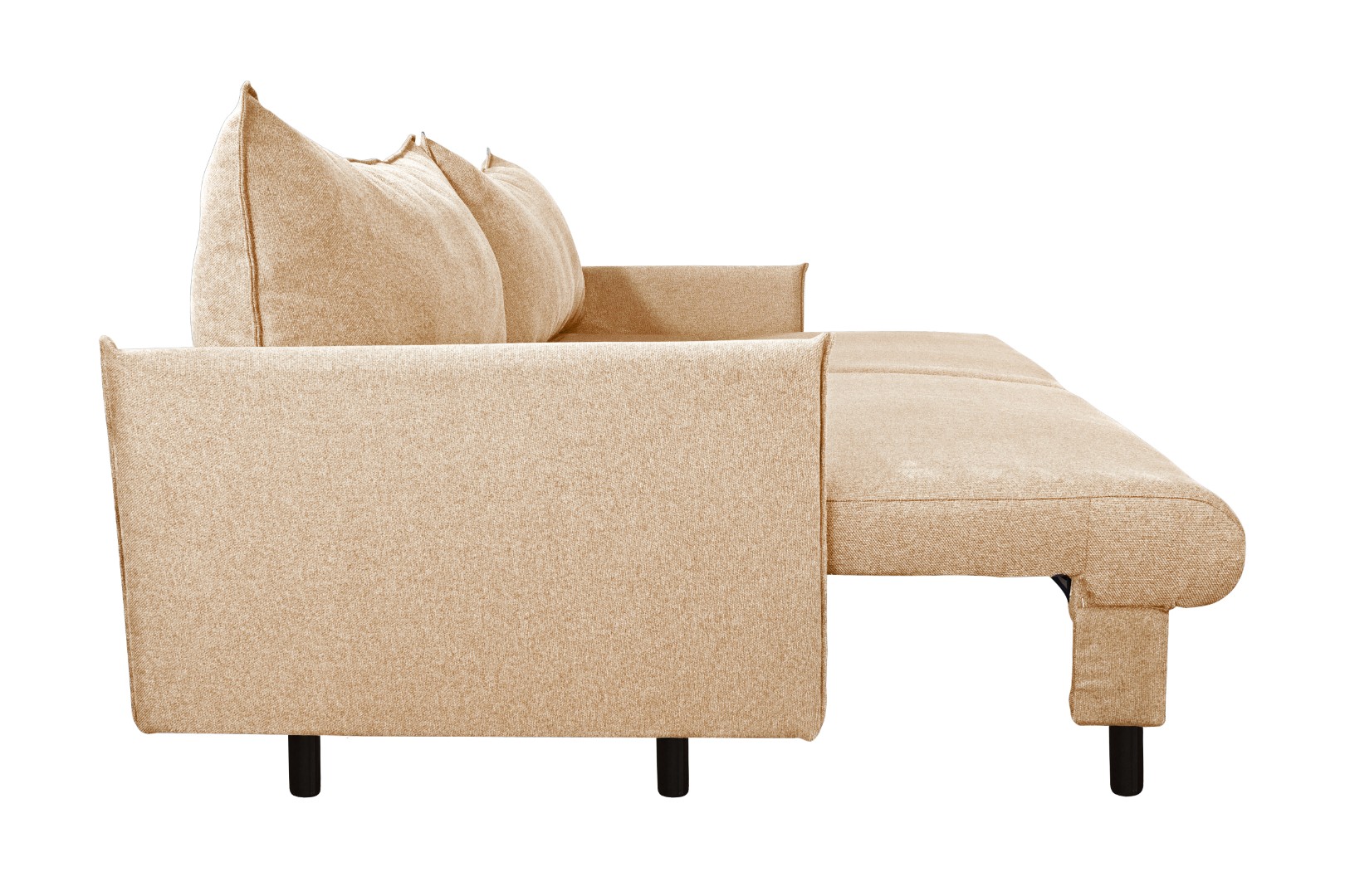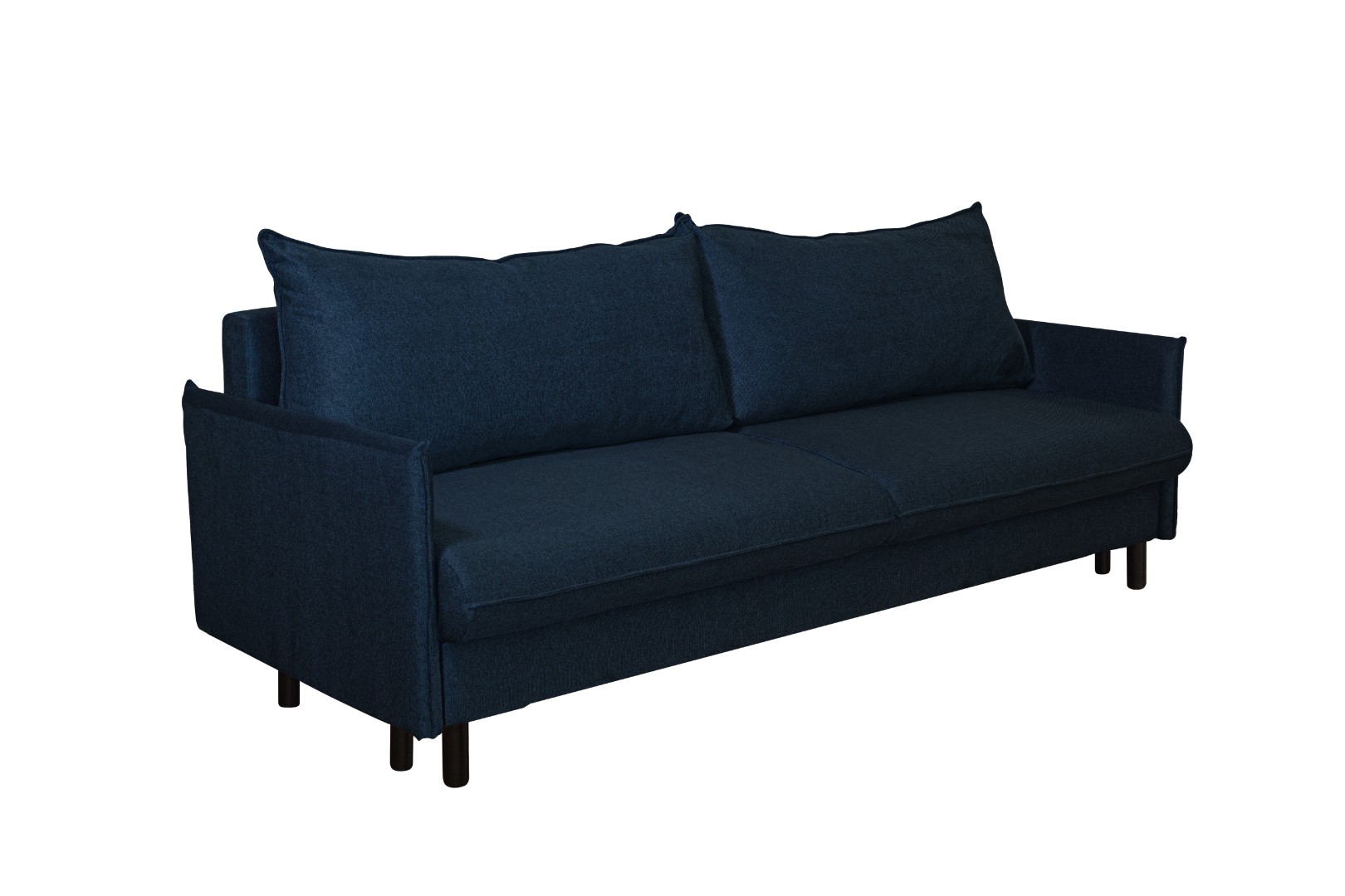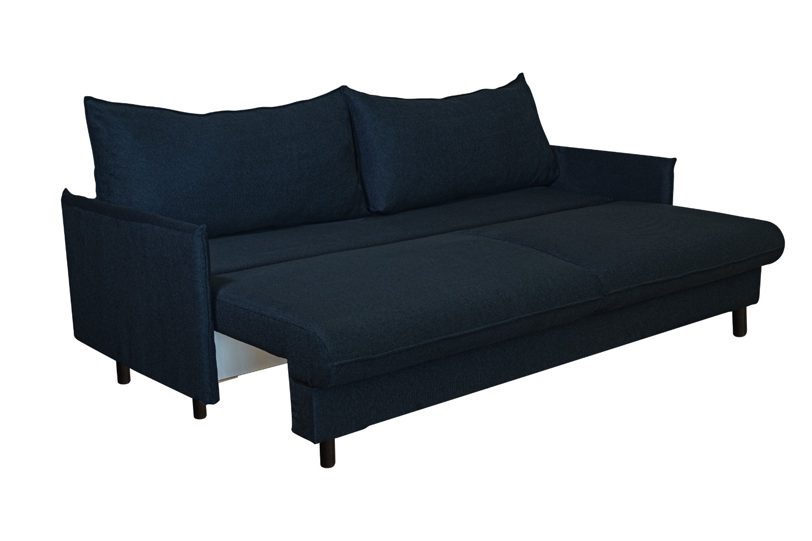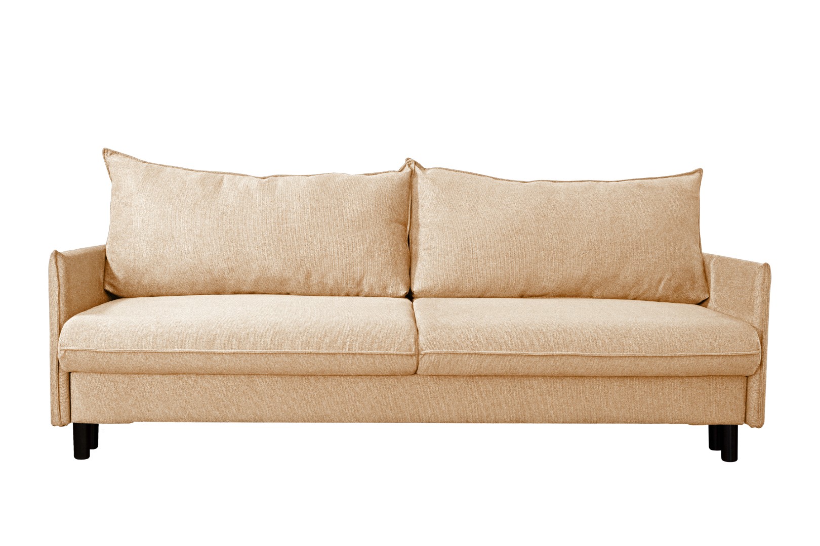Мягкий и удобный прямой диван – оснащен простым и надежным механизмом трансформации, эта модель легко раскладывается в просторное и ровное место для сна. Материал обивки – практичный и приятный на ощупь, он надолго сохраняет свой прежний вид, не истирается и легко поддается уходу. Стильная расцветка дивана гармонично поддержит общее оформление и позволит создать неповторимый интерьер. Высокие деревянные опоры придают дивану особый элегантный и современный стиль. Удобства дополняют две большие и мягкие подушки, образующие спинку.