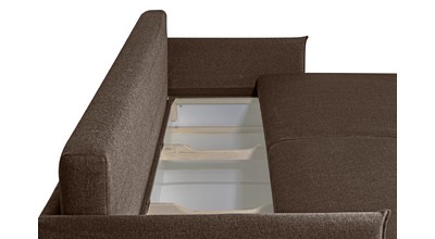 Площадь дивана полностью используется под спальное место. Наполнение сидушки - пружинная змейка. Наполнение спинки - пенополиуретан. Наполнитель подушек - синтетический пух.