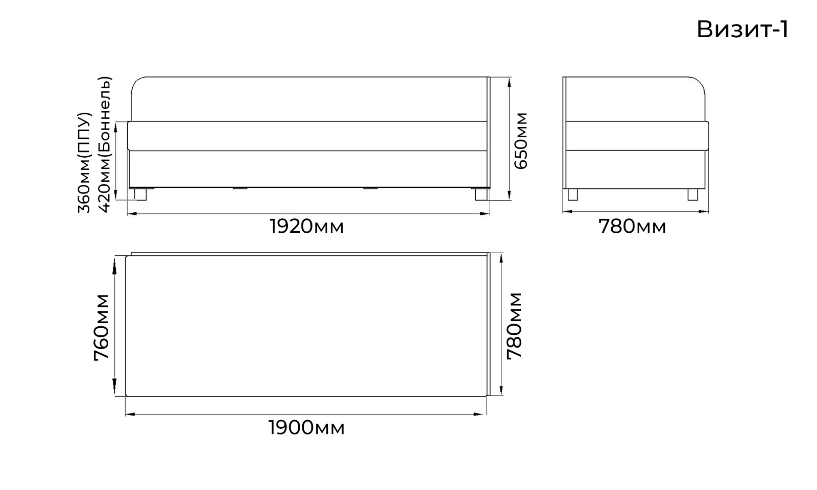 «Визит-1» - односпальная тахта без механизма раскладки.