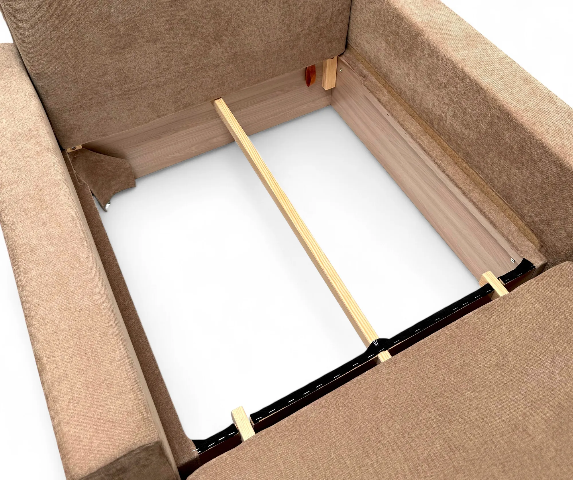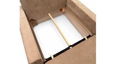 Механизм трансформации обеспечит легкость и безопасность складывания и раскладывания, а поскольку каркас изготовлен исключительно из сухой древесины, ДСП и фанеры, кресло весьма удобно в передвижении по комнате, т. к. механизм имеет небольшой вес. Также конструкция механизма позволяет разместить внутри кресла объемный ящик для белья.